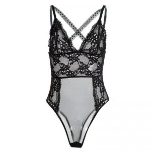 Hình ảnh chi tiết Đồ ngủ bodysuit ren thun đan dây xẻ ngực sexy 2 màu