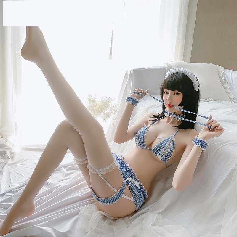 Sét đồ ngủ cosplay hầu gái bao gồm: cài tóc, vòng cổ, vòng tay, áo lót và quần lót. Chất liệu vải cotton kiểu dáng sexy quyến rũ.