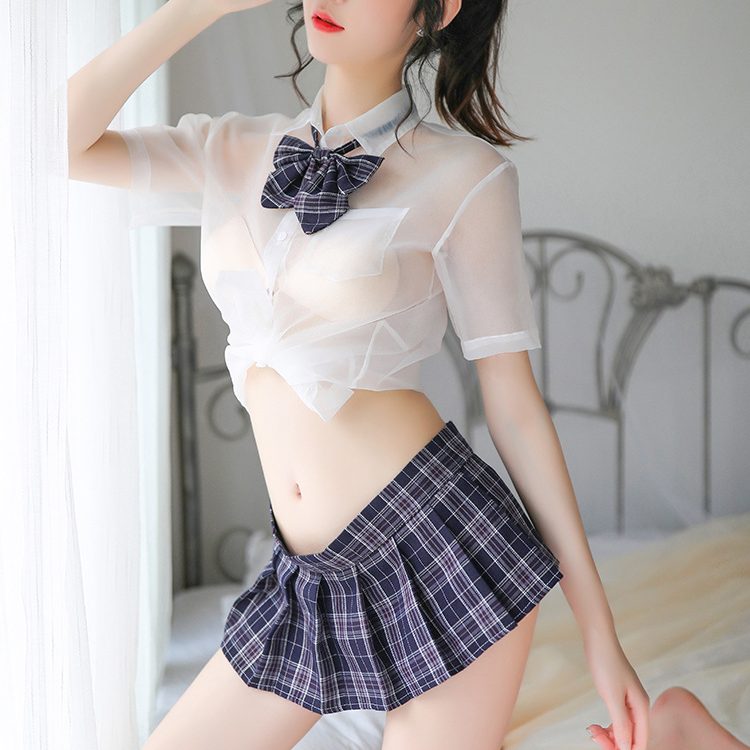 Cosplay học sinh voan trong suốt, kiểu dáng thiết kế hiện đại trẻ trung mang đến cho bạn gái vẻ đáng yêu gợi cảm. Ba màu: hồng, xám, xanh. (freesize)