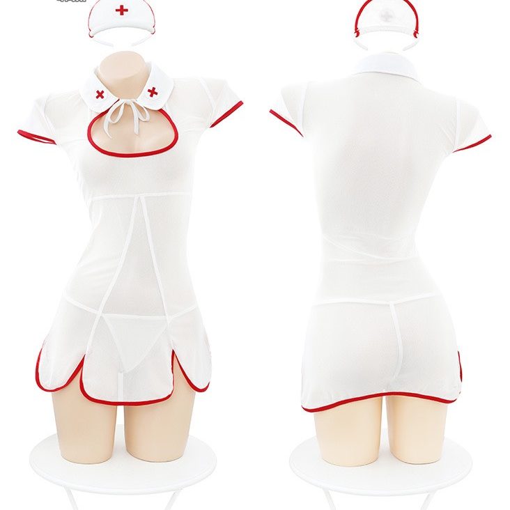 Chất liệu vải ren trong suốt kiểu dáng cosplay nàng y tá cực quyến rũ.