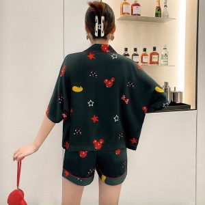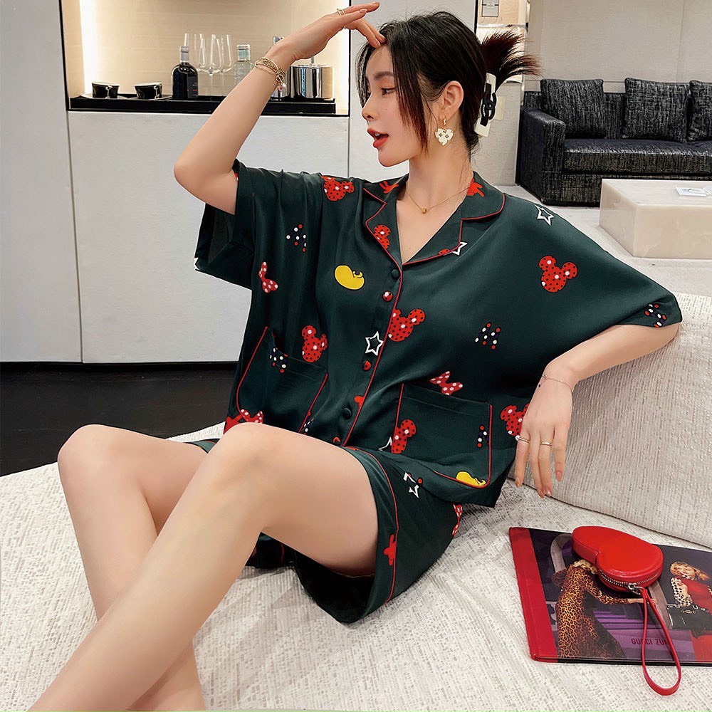 Chất liệu lụa cao cấp mềm mịn kiểu dáng cánh dơi quần tay ngắn hoạ tiết in cute mang lại cho bạn gái sự thoải mái khi mặc.