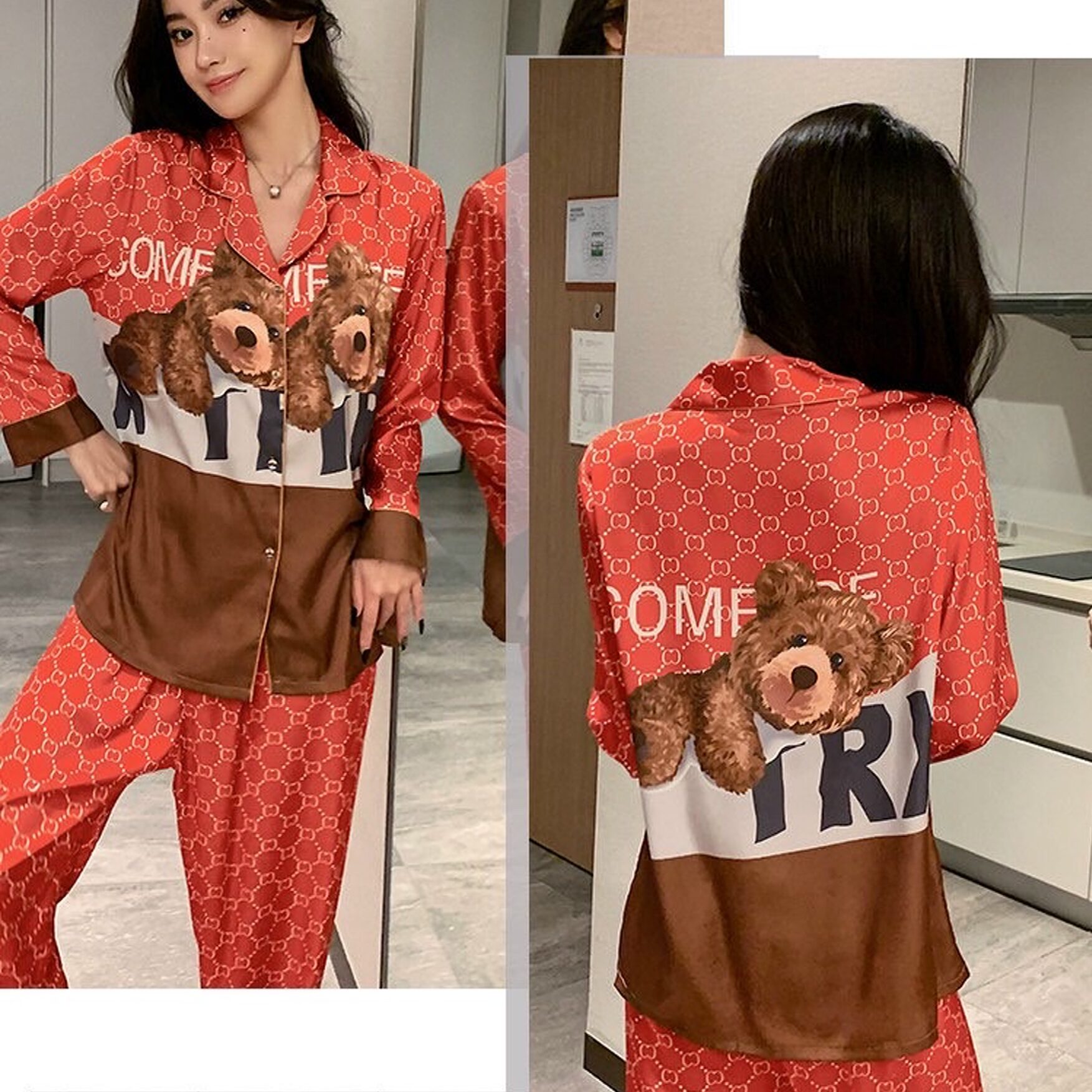 Đồ ngủ pijama cao cấp lụa mềm mịn họa tiết in sắc sảo gấu teddy cute đáng yêu sang trọng mang lại cho bạn gái sự thoải mái cùng sự tự tin khi ở nhà hoặc ra ngoài dạo phố. Màu: đen, đỏ.