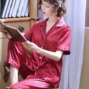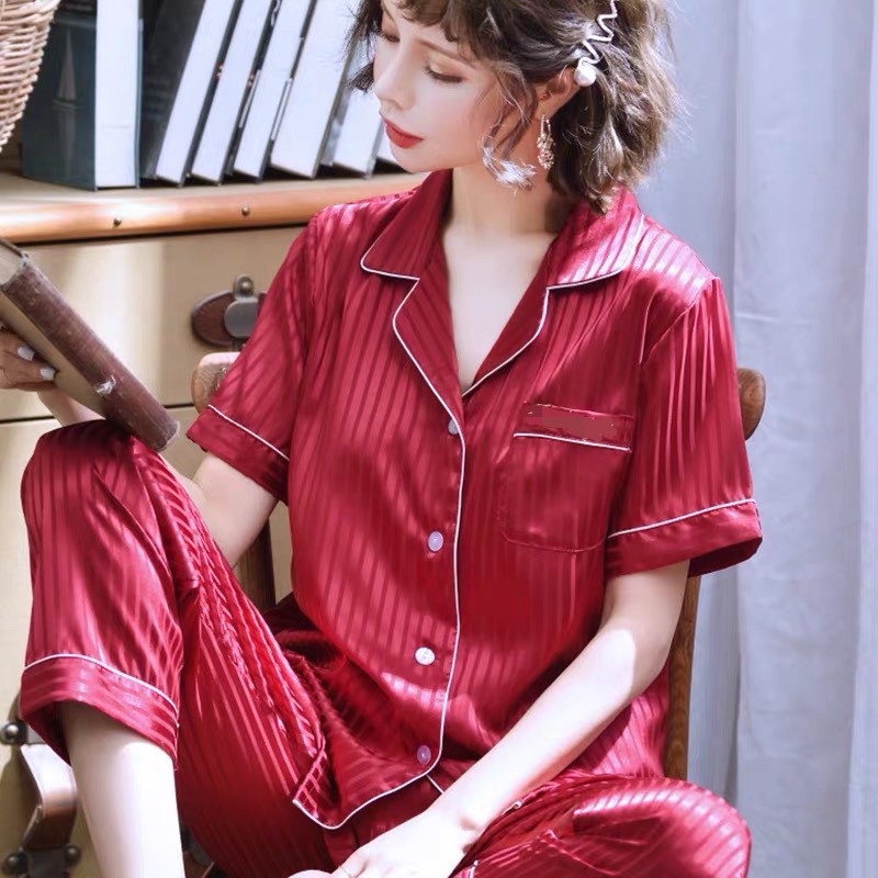 Hình ảnh chi tiết Đồ ngủ pijama chất phi lụa mềm sọc đỏ sang trọng
