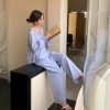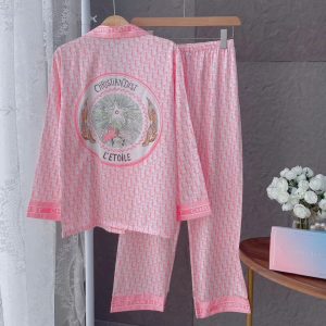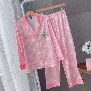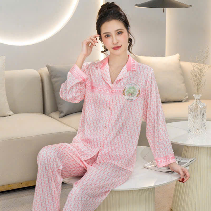 Set pijama dài tay mang phong cách sang trọng với gam hồng pastel nhẹ nhàng, kết hợp họa tiết in tinh tế tạo điểm nhấn nổi bật. Thiết kế cổ vest cổ điển cùng form dáng rộng giúp tôn lên vẻ thanh lịch và mang lại cảm giác thoải mái tối đa khi mặc.