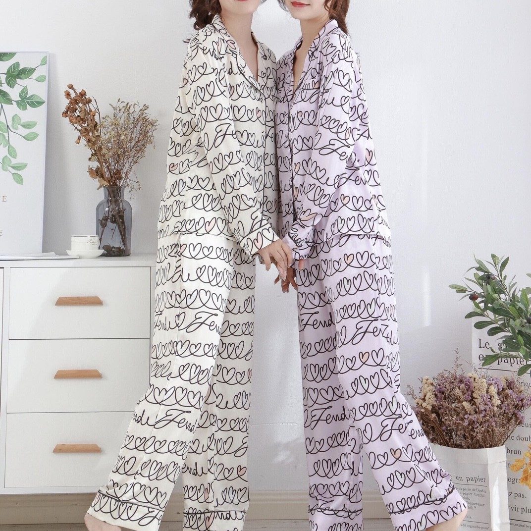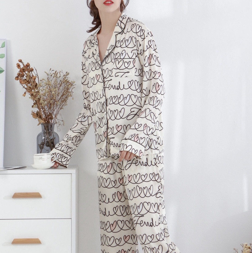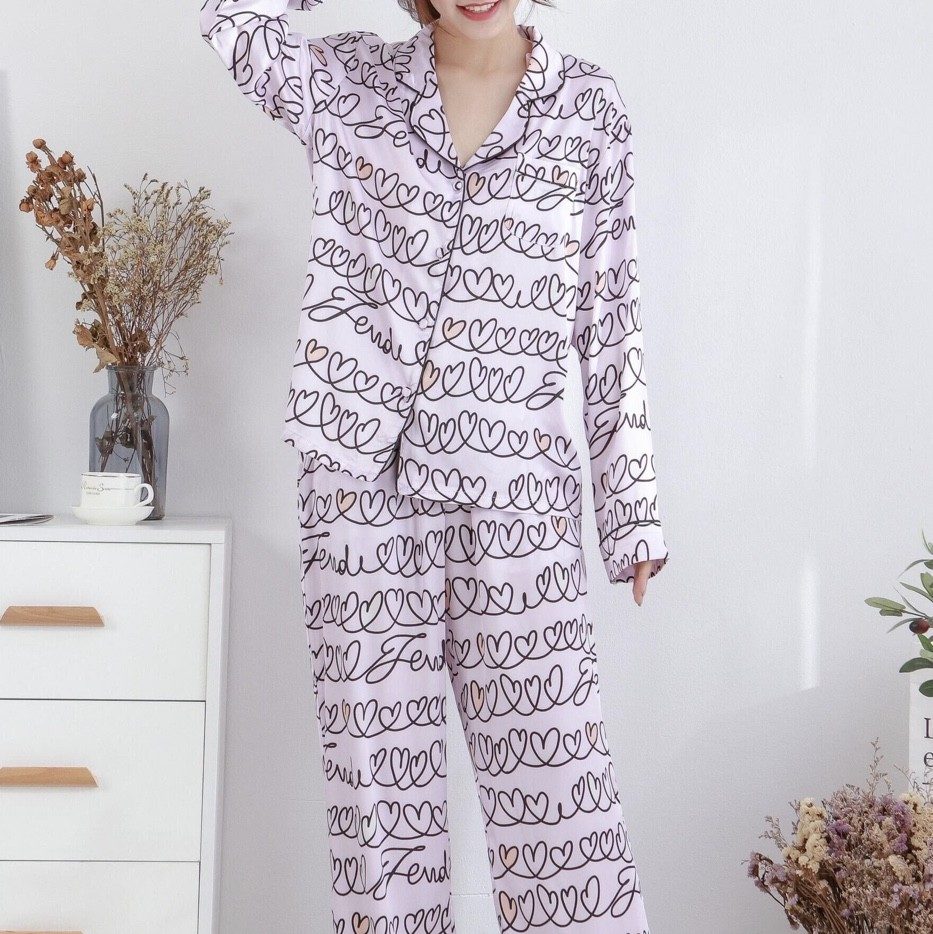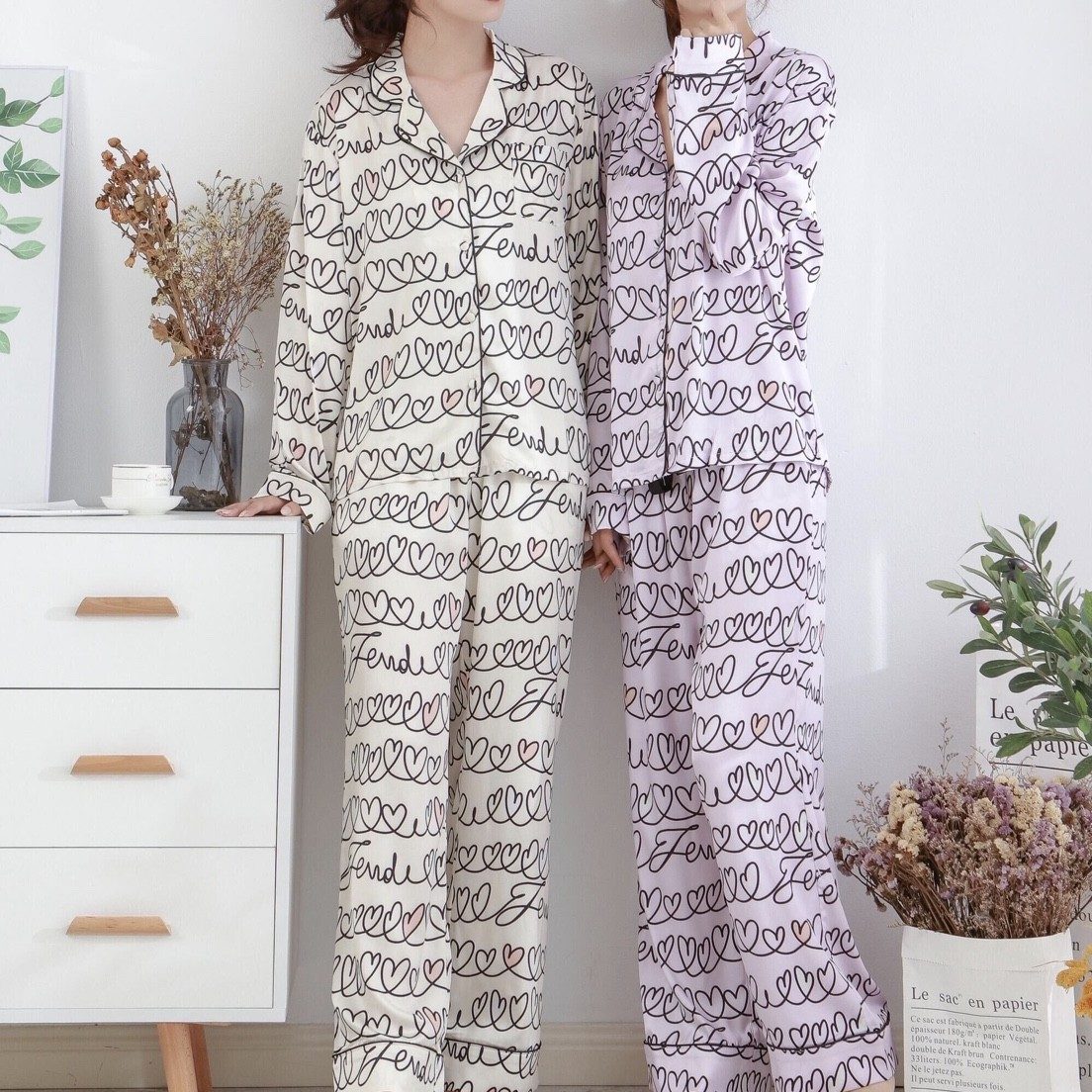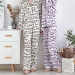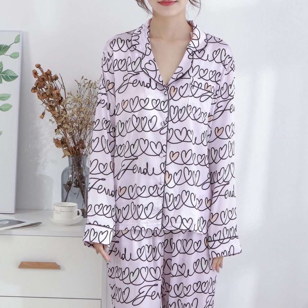 Đồ ngủ pijama chất liệu mềm mịn không nhăn không xù lông, pijama dài tay họa tiết tim đáng yêu mang lại cho bạn sự thoải mái tự tin khi mặc ngay cả khi ở nhà.