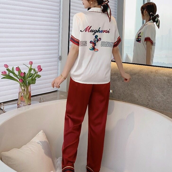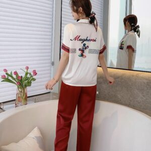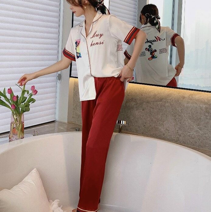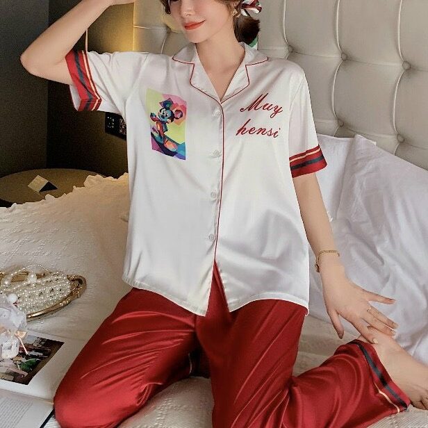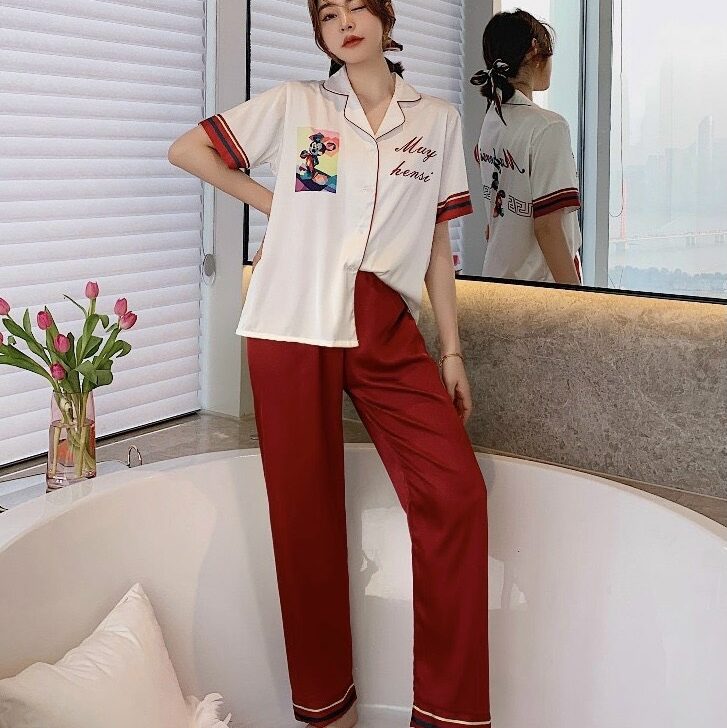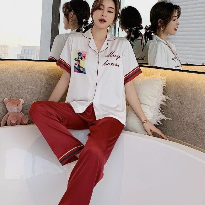Chất liệu lụa mềm mịn họa tiết in đáng yêu kiểu dáng pijama dài tay ngắn cho bạn sự thoải mái khi ở nhà tự tin khi ra phố.