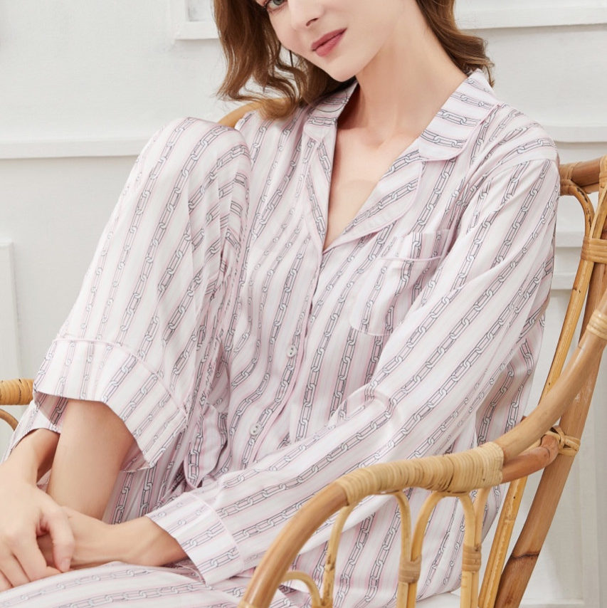 Hình ảnh chi tiết Đồ ngủ pijama dài ngắn tay họa tiết sọc sang trọng