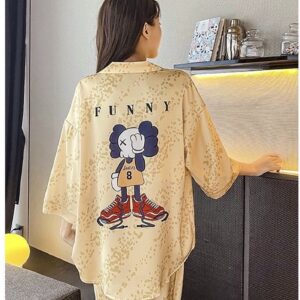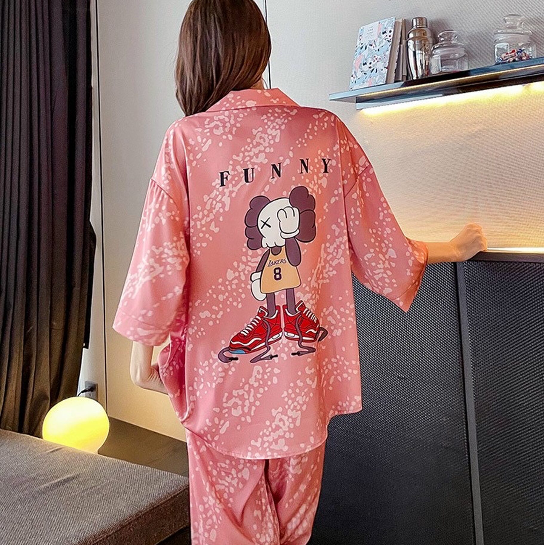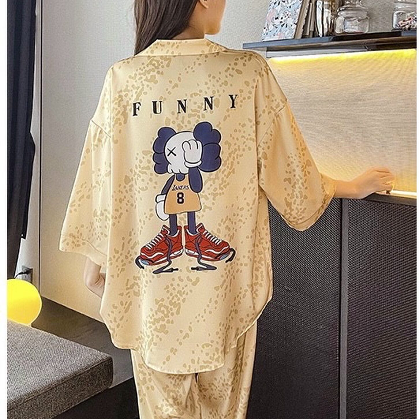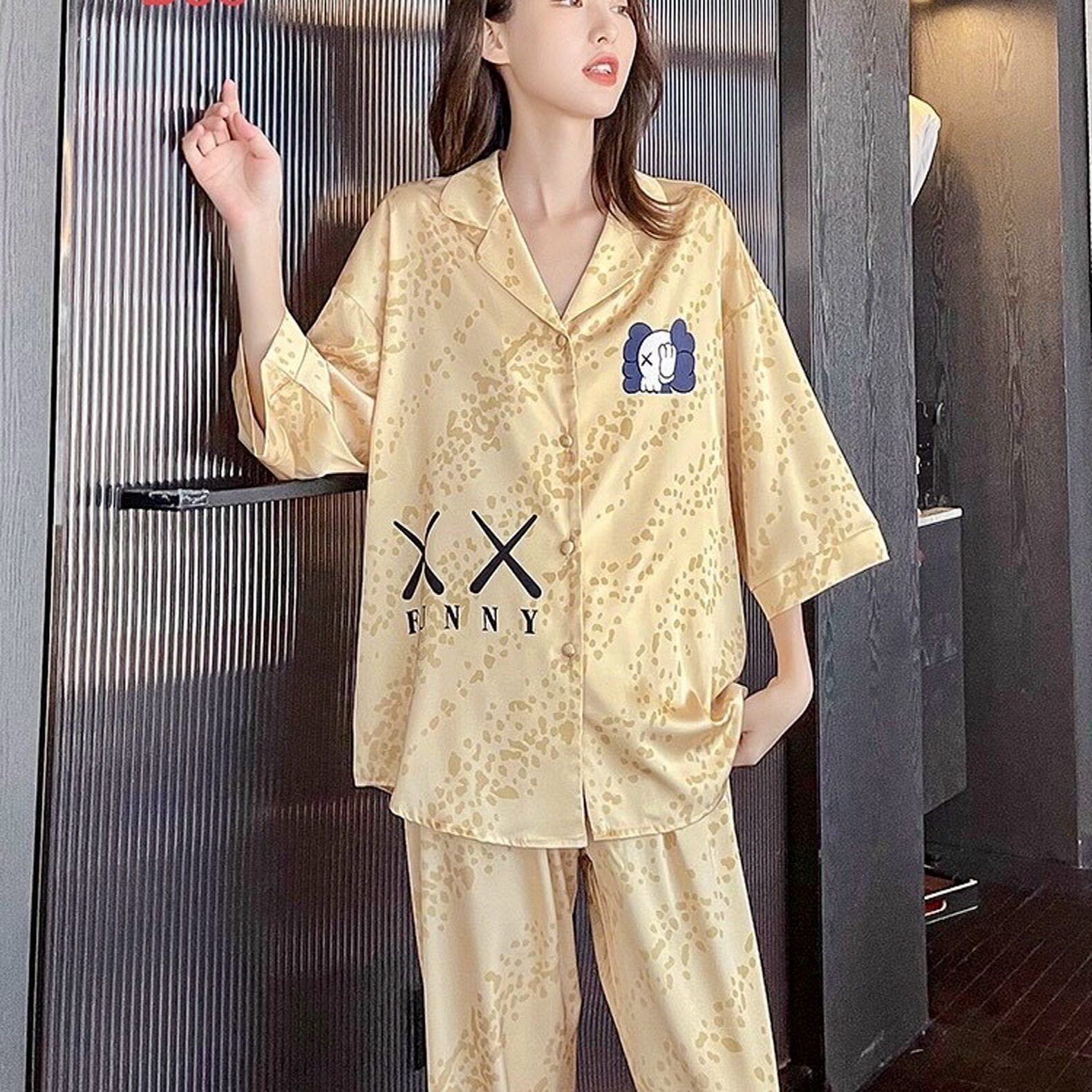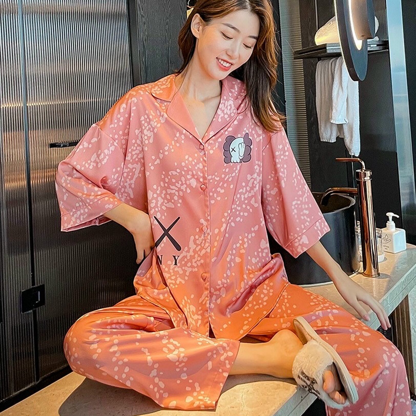 Chất liệu lụa cao cấp mềm mịn đồ ngủ pijama kiểu dáng dài tay cánh dơi phôm rộng mặc cực thích. Màu sắc: hồng, vàng.
