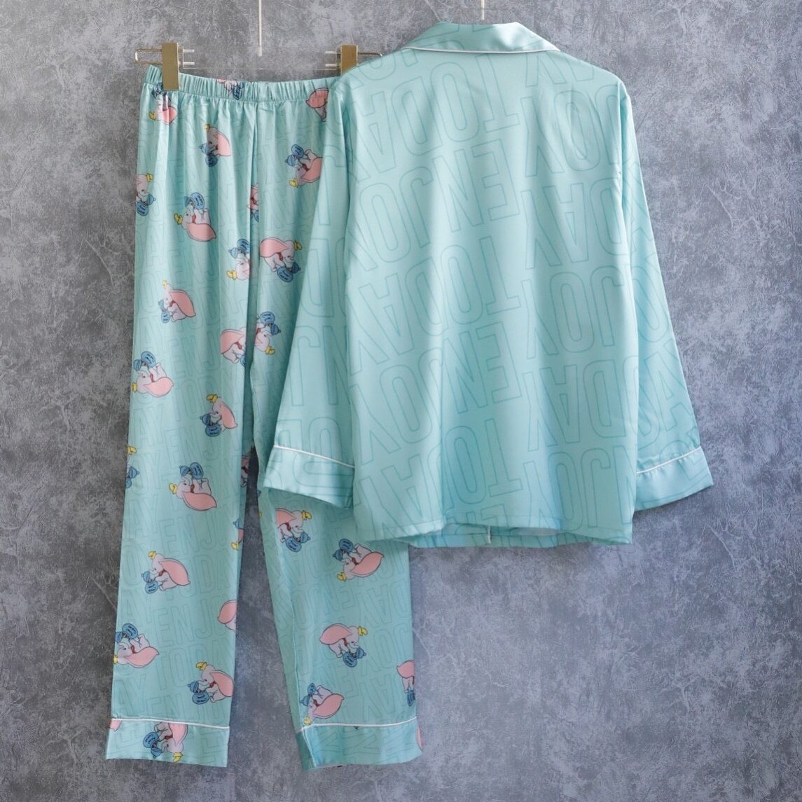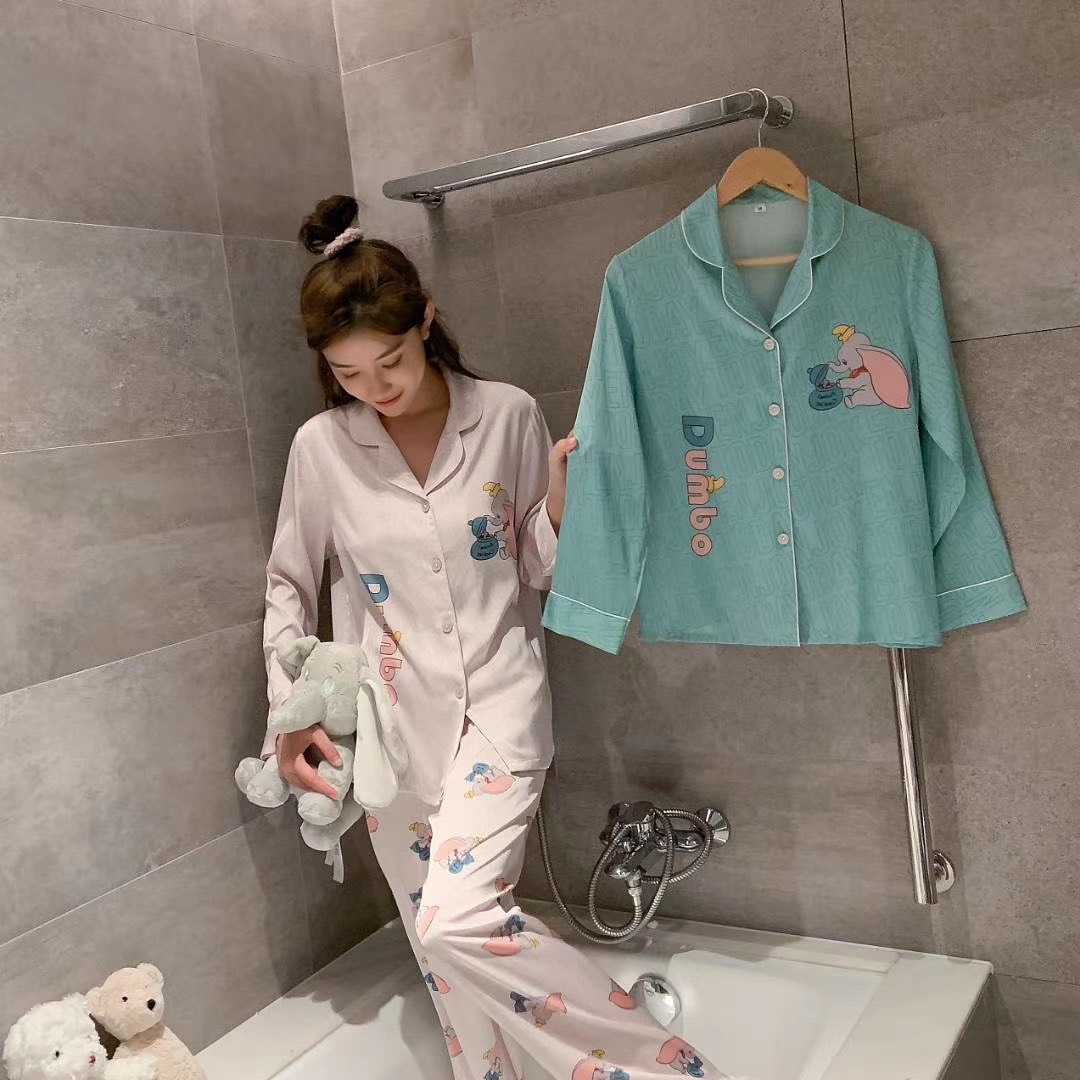 Chất liệu lụa in cao cấp kiểu dáng pijama dài tay dài họa tiết in đẹp chú voi con dumbo đáng yêu mang đến cho bạn sự thoải mái và sàng trọng khi ở nhà hoặc ngoài phố. Màu: hồng, xanh.