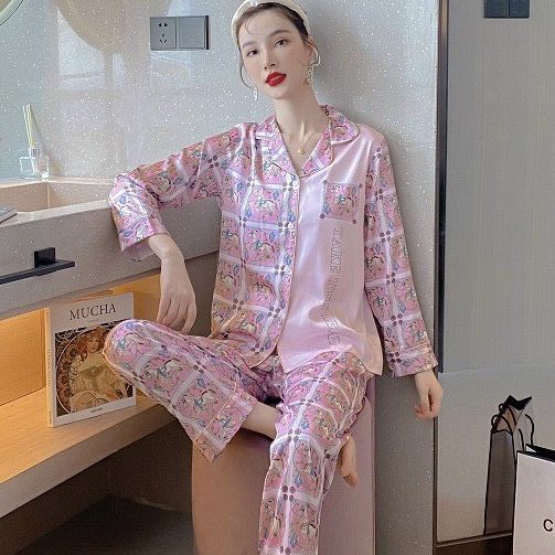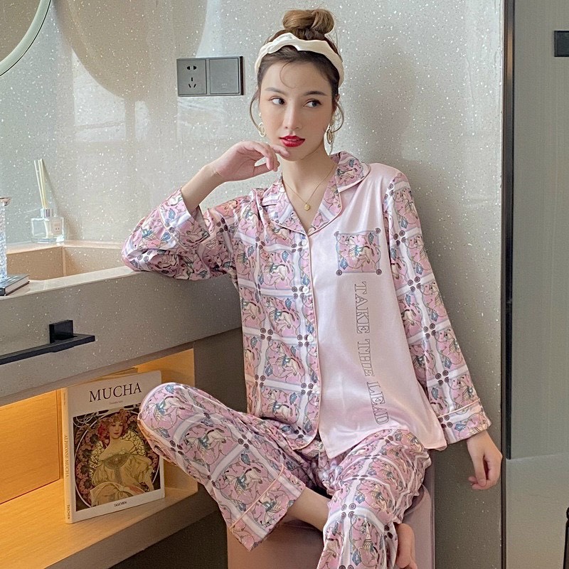 Đồ ngủ bộ dài tay dài chất liệu lụa cao cấp họa tiết in rõ nét sắc sảo cute đán yêu cho nàng thêm phần tự tin thoải mái khi mặc.