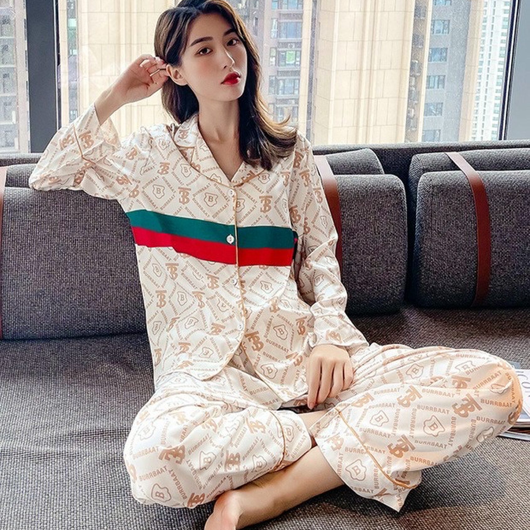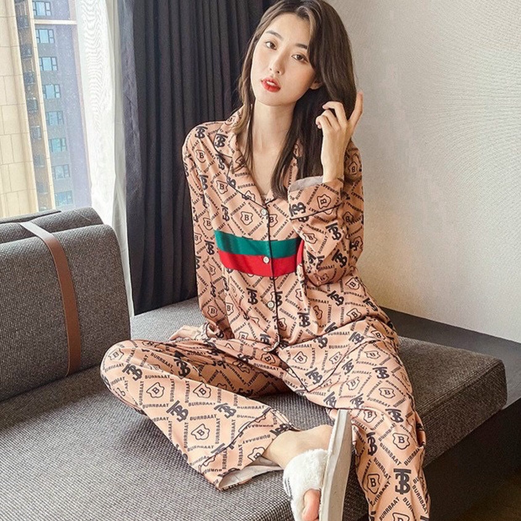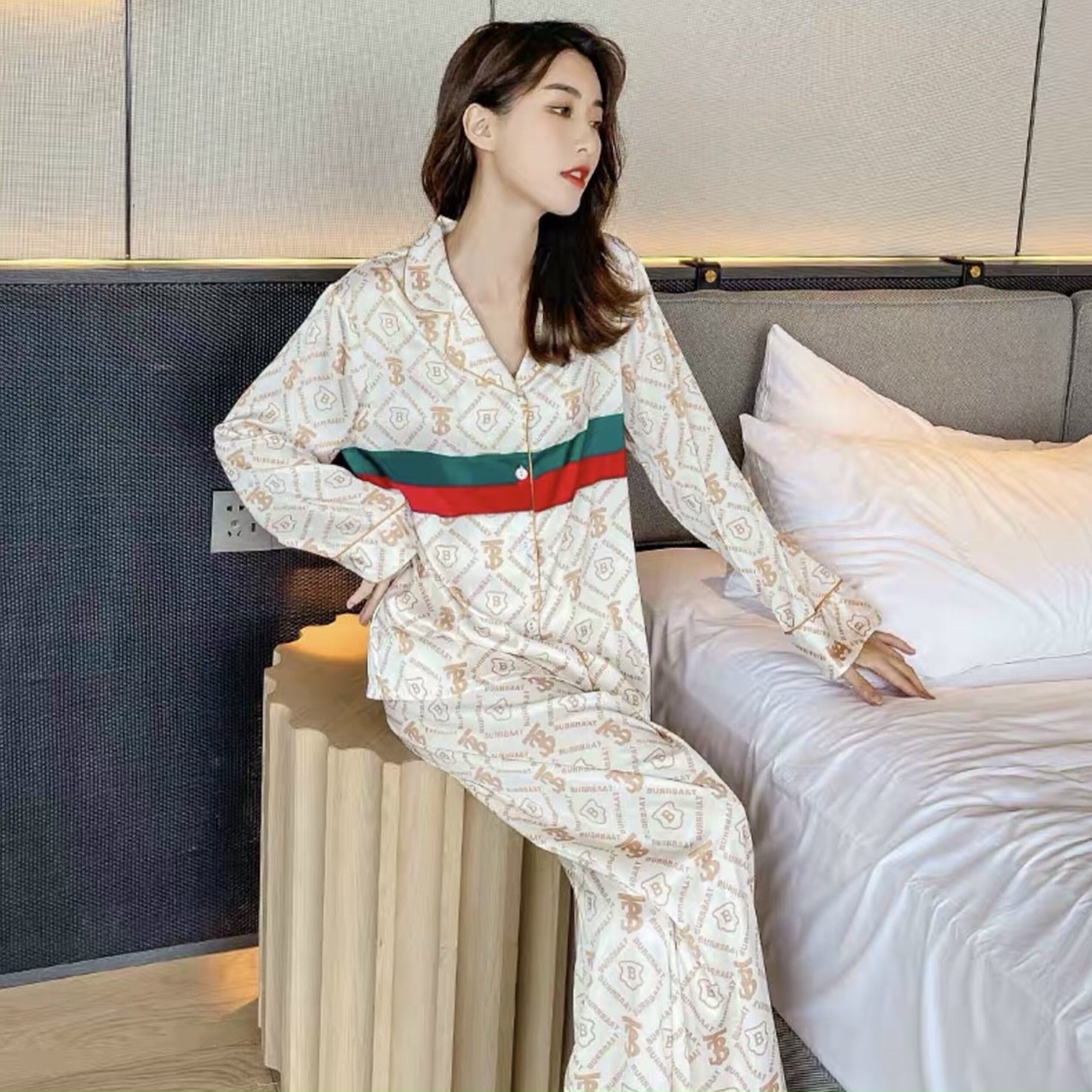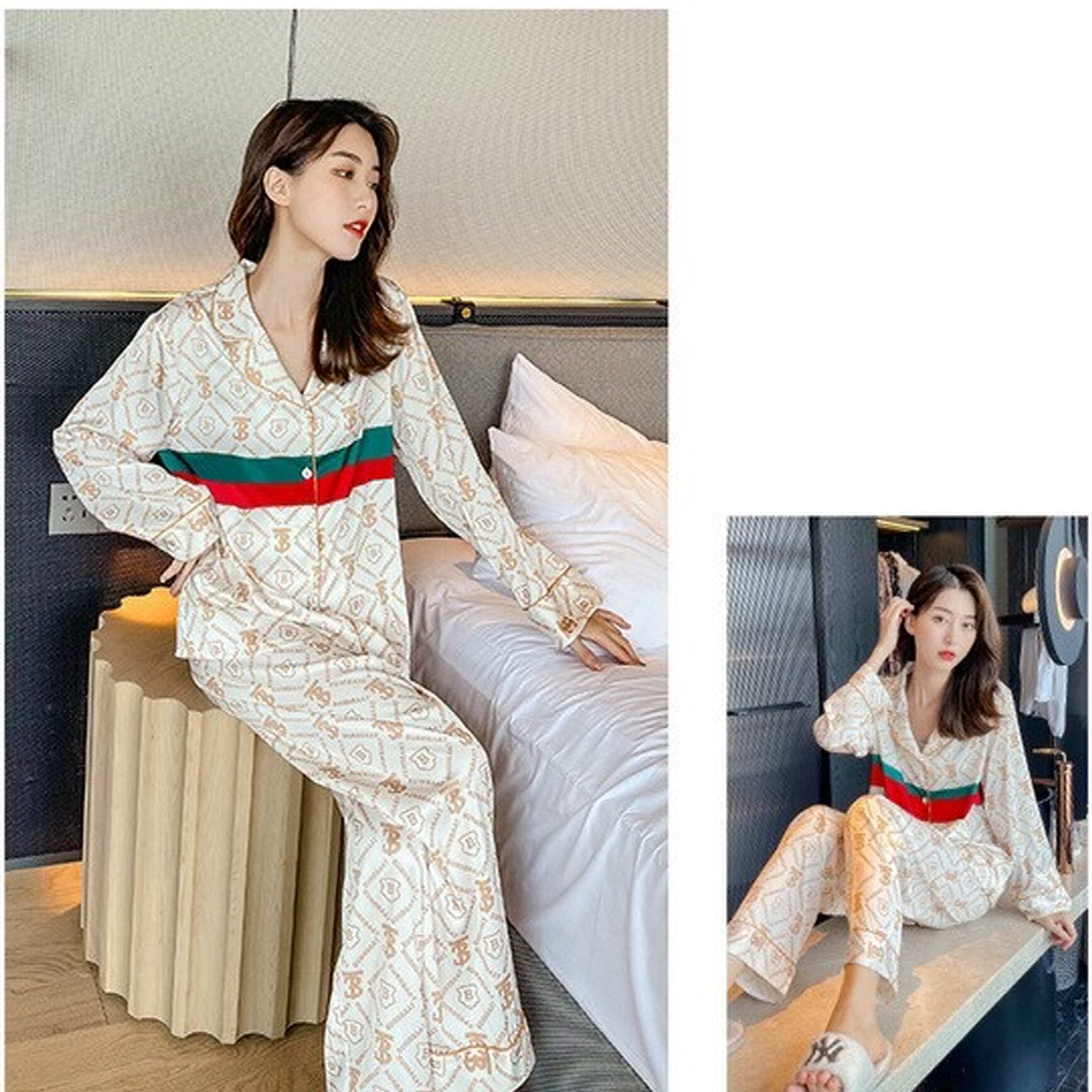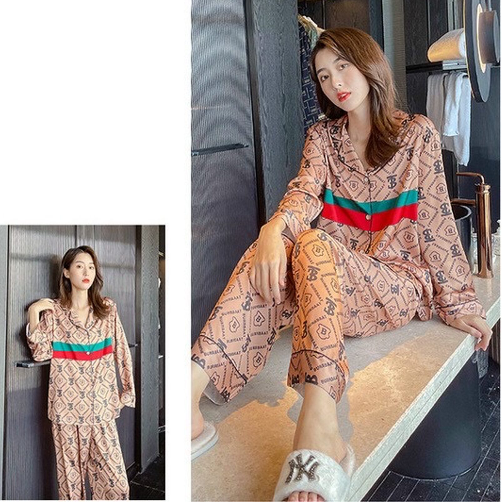 Đồ ngủ pijama dài chất liệu lụa mềm mịn không nhăn hoạ tiết in cực sang trọng cho bạn gái sự tự tin và thoải mái khi ở nhà cũng như dạo phố.