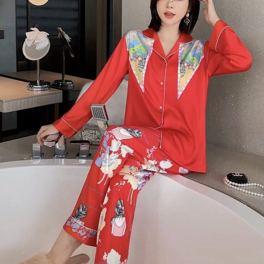 Đồ ngủ bộ cao cấp kiểu dáng dài tay dài lụa mềm mịn họa tiết in sắc nét sang trọng mang lại cho bạn nữ sự thoải mái khi ở nhà hay ra ngoài dạo phố.