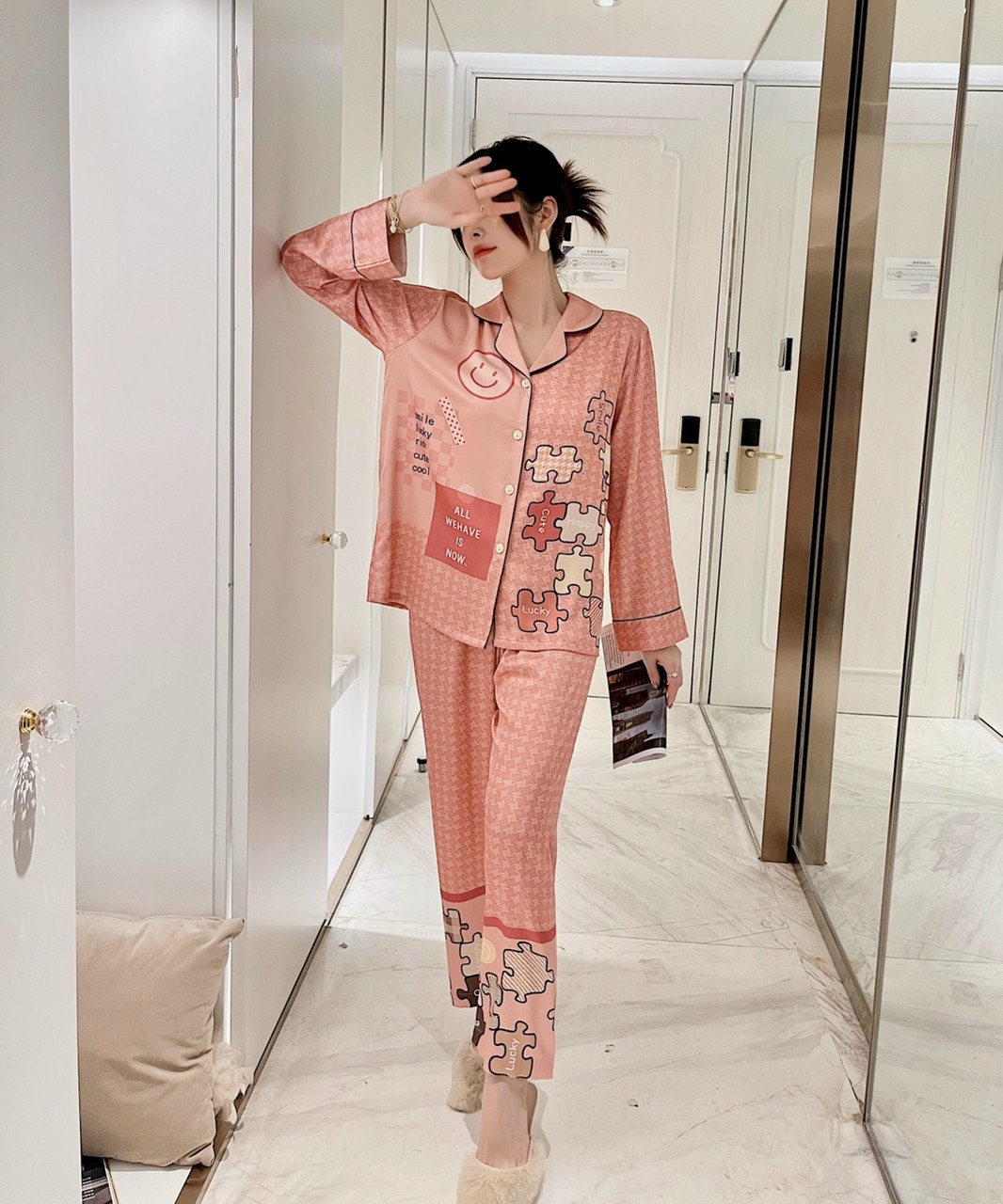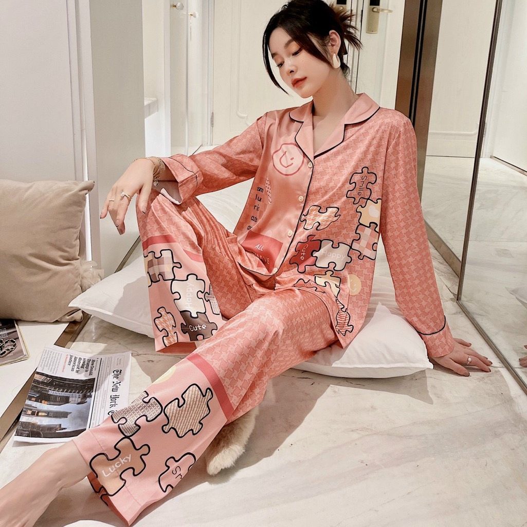 Chất liệu lụa cao cấp mềm mịn hoạ tiết in sắc sảo đáng yêu trẻ trung kiểu dáng quần dài tay dài mang lại cho bạn sự thoải mái tự tin,