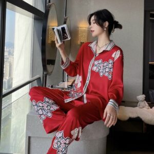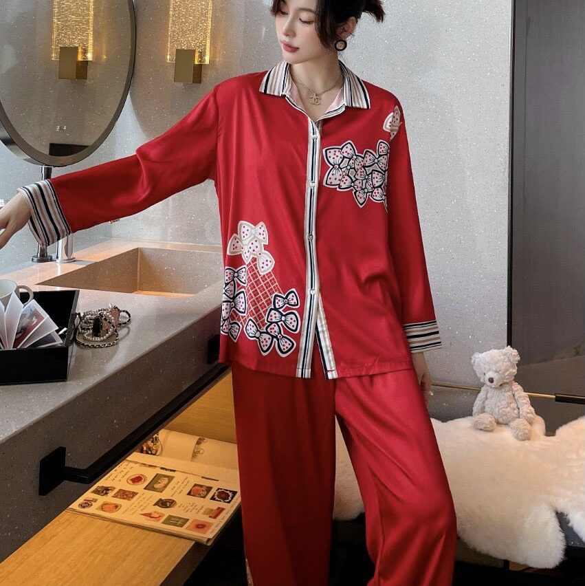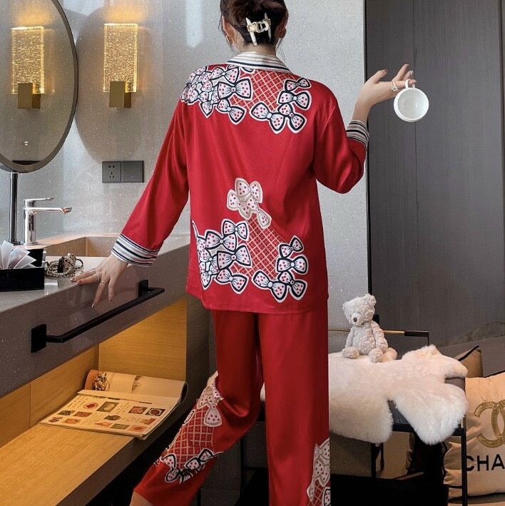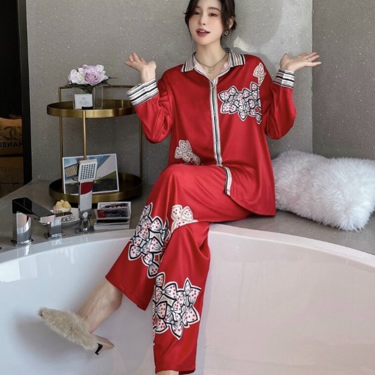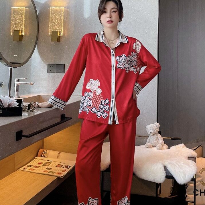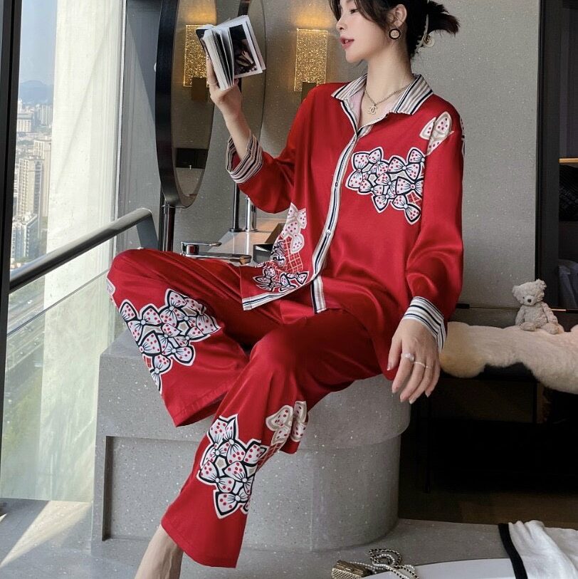 Đồ ngủ pijama dài tay dài chất liệu lụa mềm cao cấp ko nhăn phối hoạ tiết cực sang trọng mang lại cho bạn cảm giác thoải mái khi ở nhà.