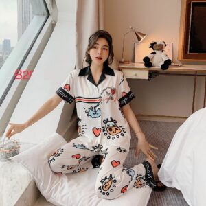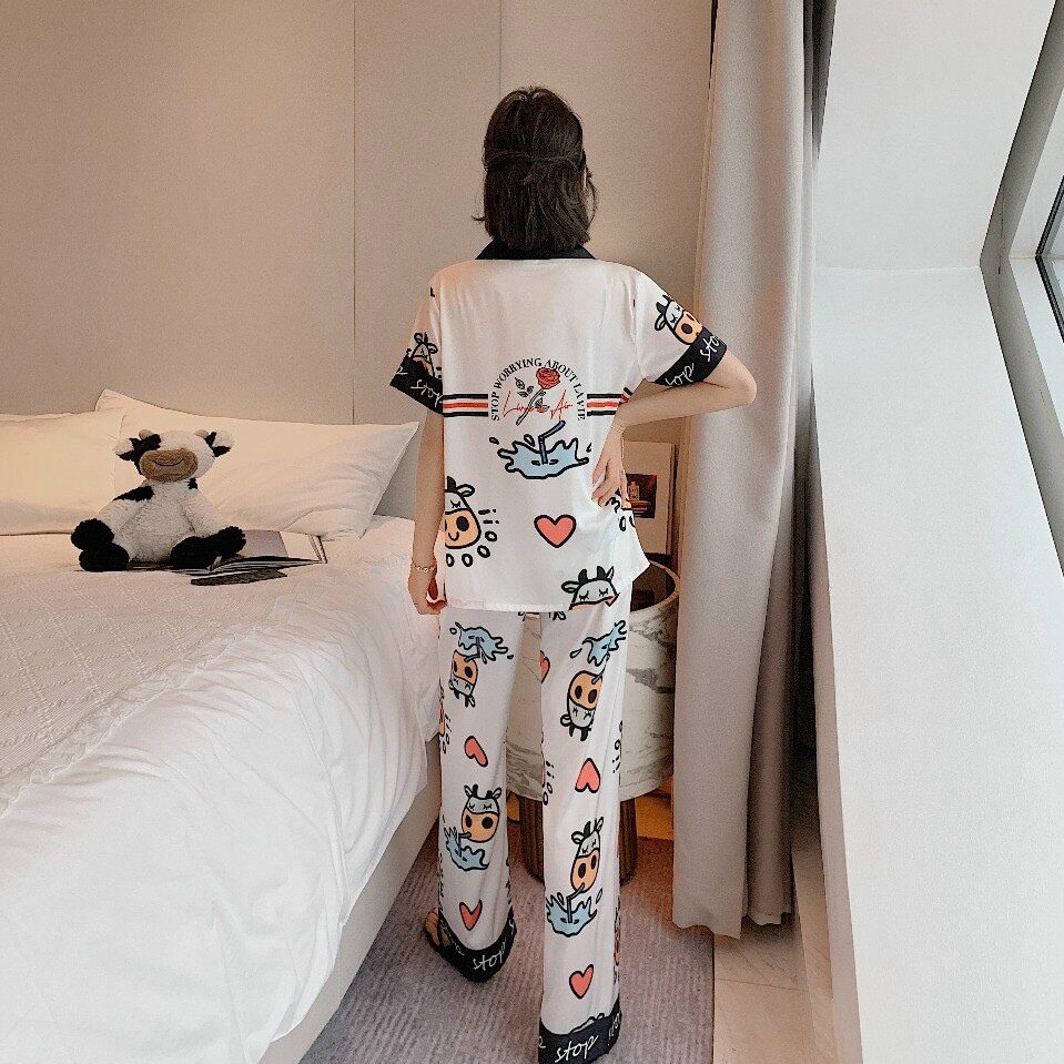 Họa tiết con bò sữa uống nước đáng yêu kiểu dáng pijama dài ngắn tay mang lại cho bạn sự thoải mái tự tin khi mặc.
