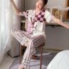 Lụa cao cấp mềm mịn họa tiết in sang trọng đồ ngủ pijama dài tay ngắn mang lại cho bạn sự thoải mái và tự tin khi mặc.
