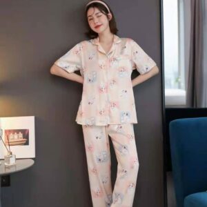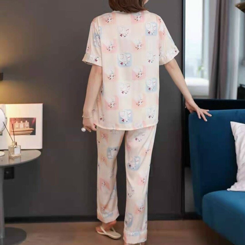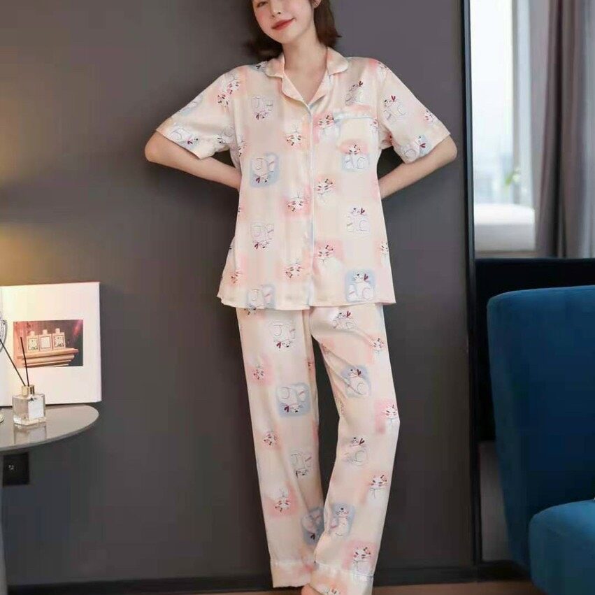 Họa tiết mèo cute đáng yêu chất liệu lụa mềm mịn kiểu dáng pijama dài tay ngắn mang lại cho bạn sự tự tin thoải mái khi mặc.