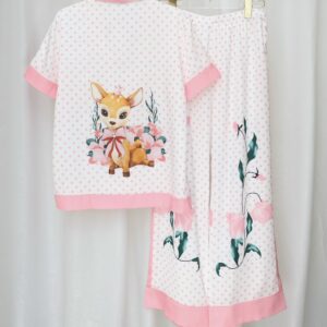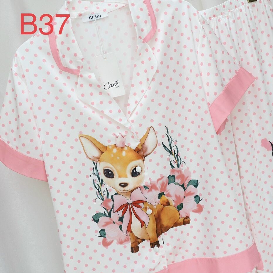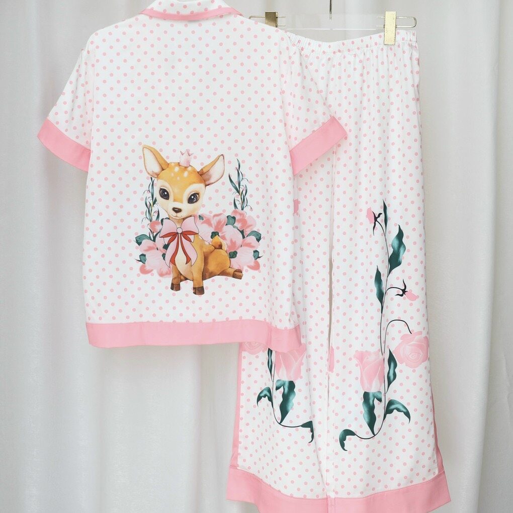 Chất liệu lụa cao cấp mềm mịn họa tiết in cute đáng yêu kiểu dáng pijama dài tay ngắn đem lại cho bạn sự thoải mái tự tin.