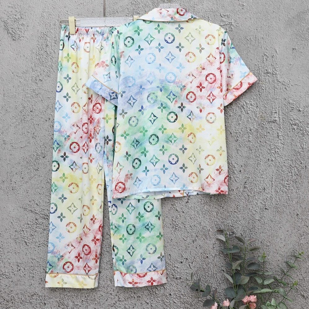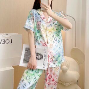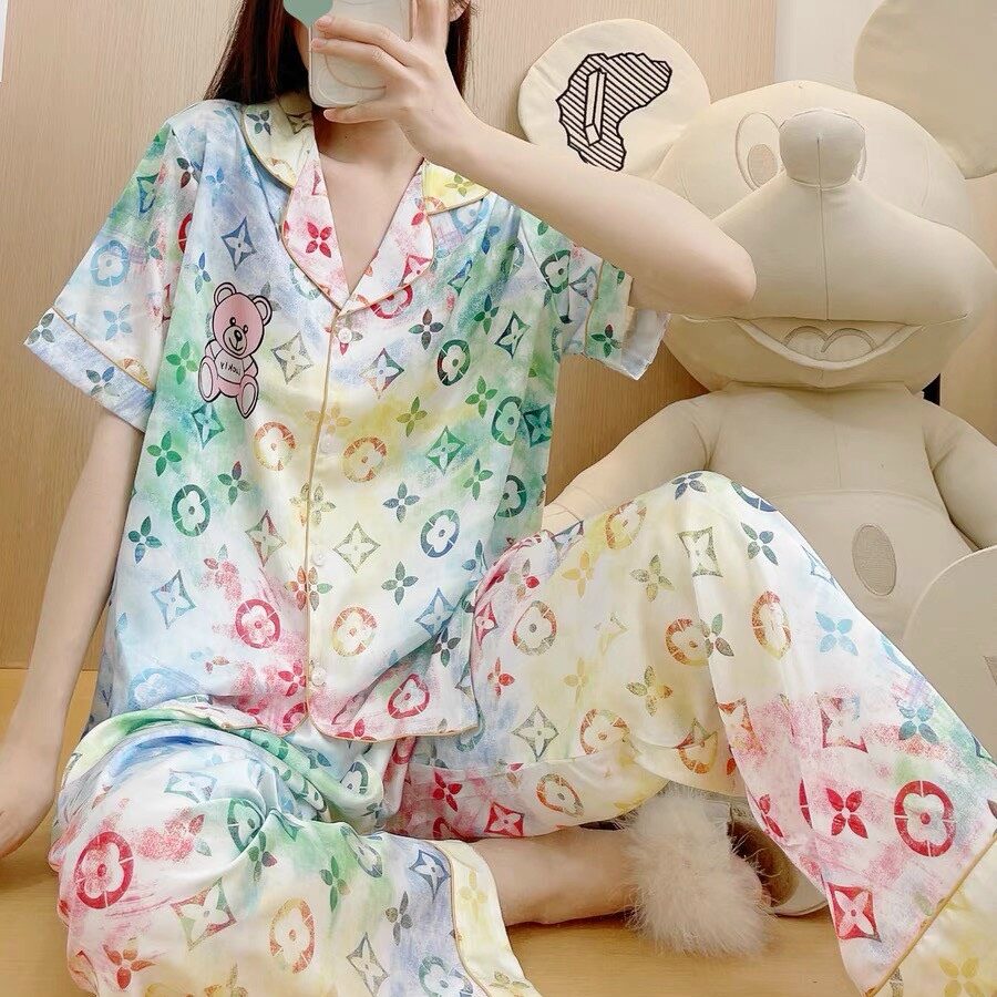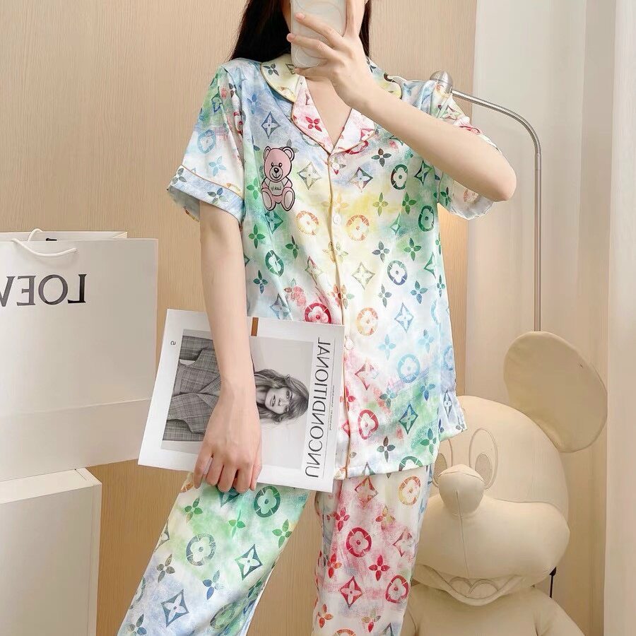 Màu sắc tươi trẻ họa tiết sang trọng kiểu dáng pijama quần dài tay ngắn cực trẻ trung cho bạn gái năng động.