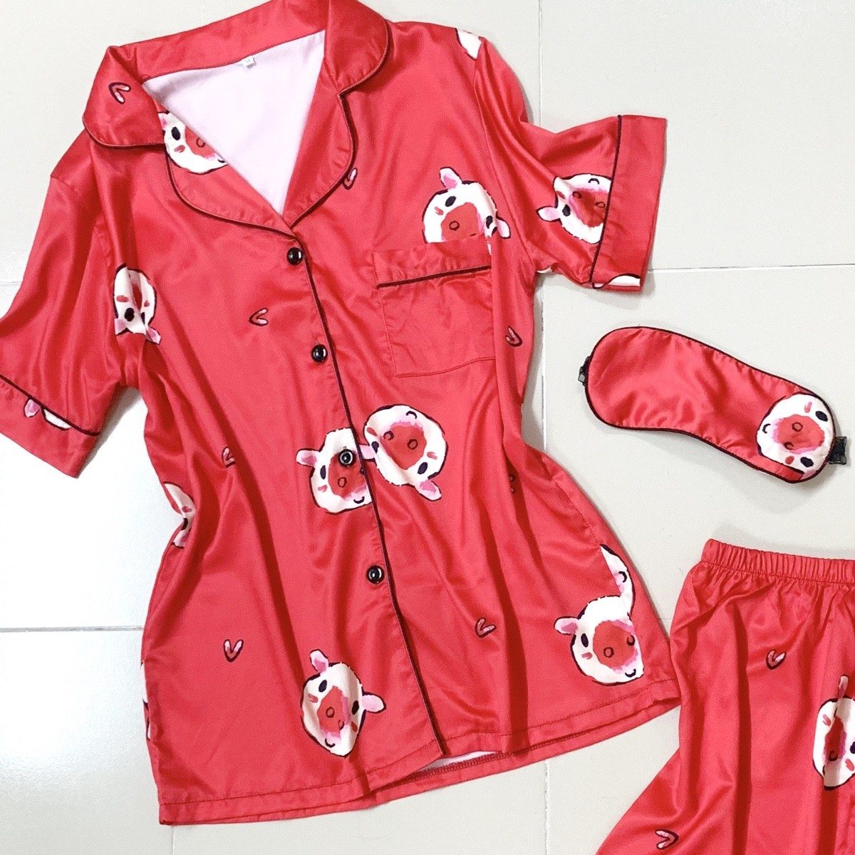 Đồ ngủ pijama họa tiết hình heo dễ thương, chất liệu phi lụa cao cấp. Kiểu dáng được thiết kế trẻ trung hiện đại giúp mang lại cho bạn gái phong cách dễ thương gợi cảm. Ba màu: đỏ, hồng, xanh (freesize).