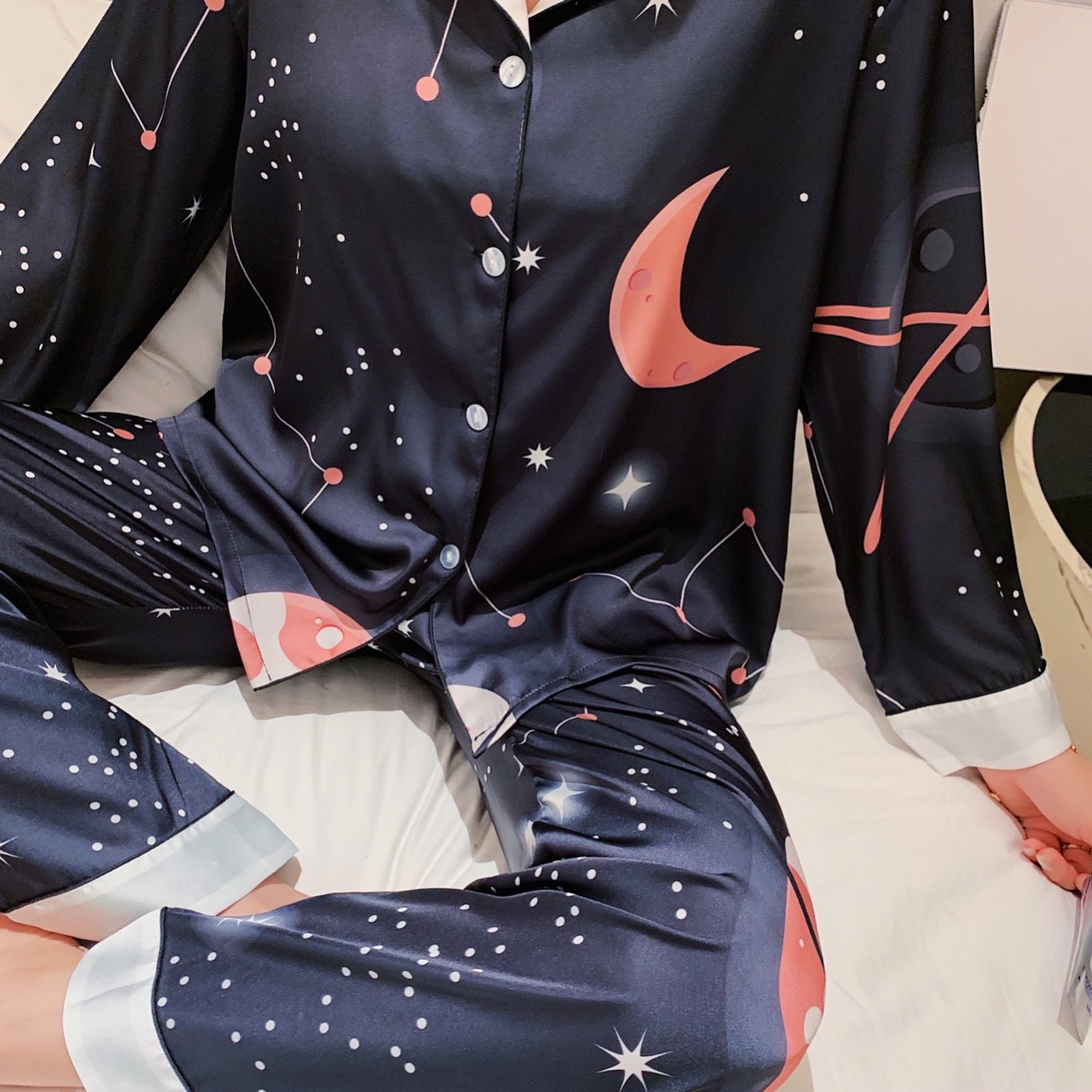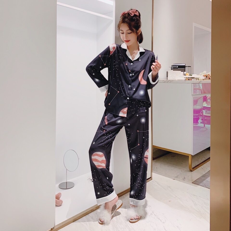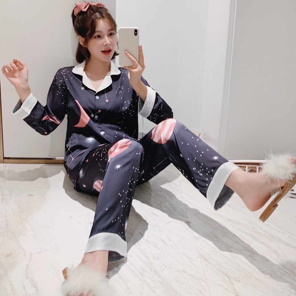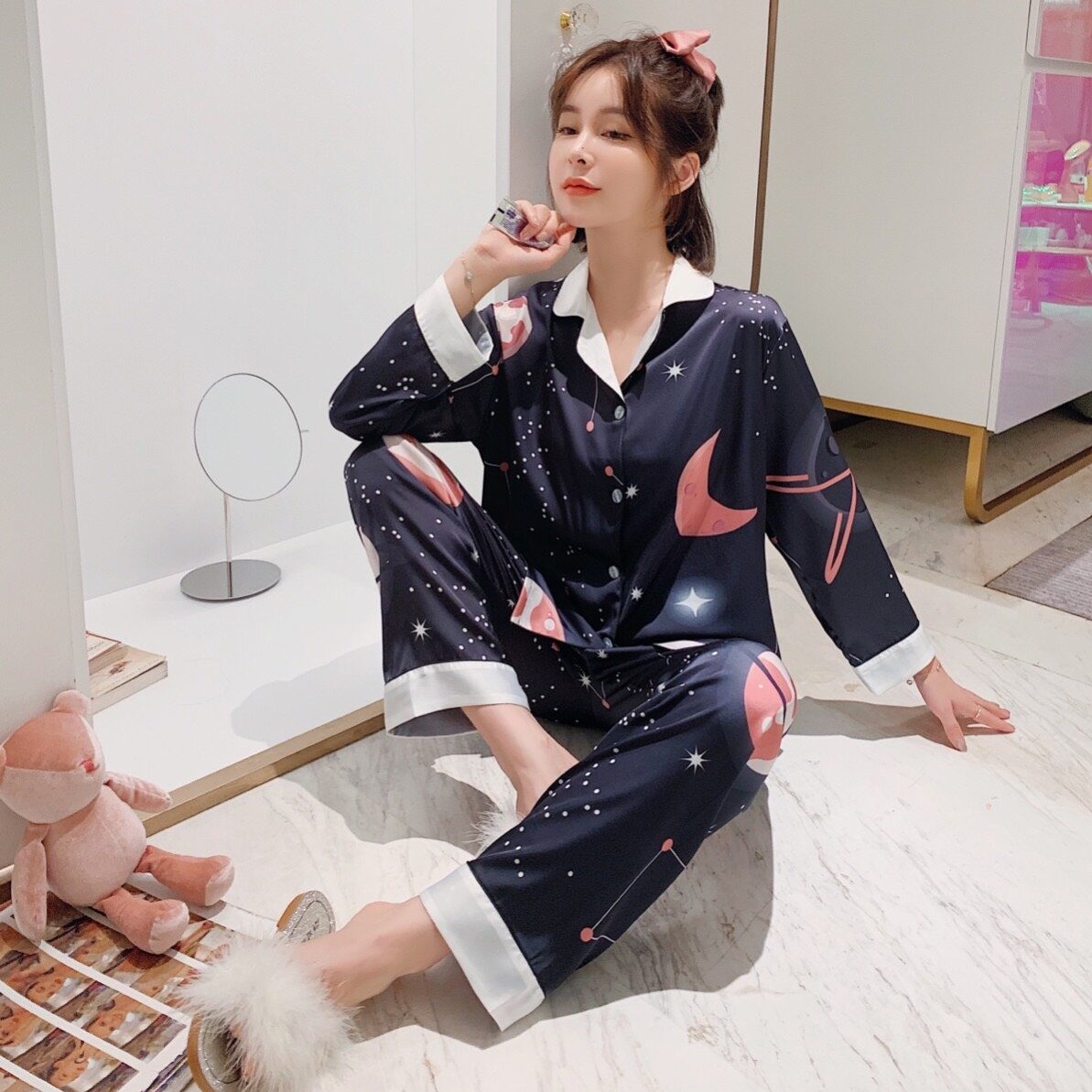 Đồ ngủ pijama chất liệu lụa cao cấp mềm mịn không nhăn họa tiết in cực cute mang lại cho bạn sự thoải mái sang trọng khi ở nhà.