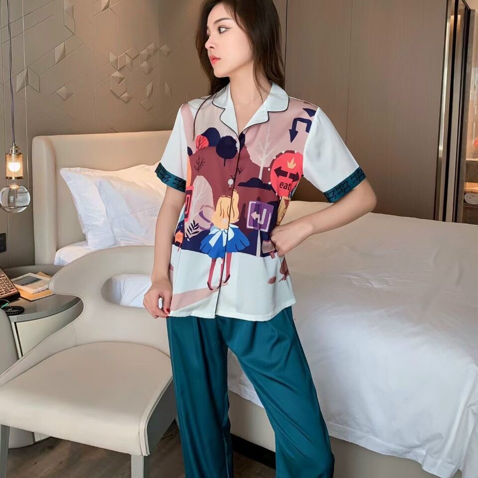 Đồ ngủ pijama lụa cao cấp mềm mịn kiểu dáng quần dài tay ngắn họa tiết sang trọng đáng yêu mang đến cho bạn sự thoải mái khi mặc ở nhà hoặc dạo phố.
