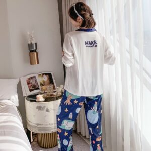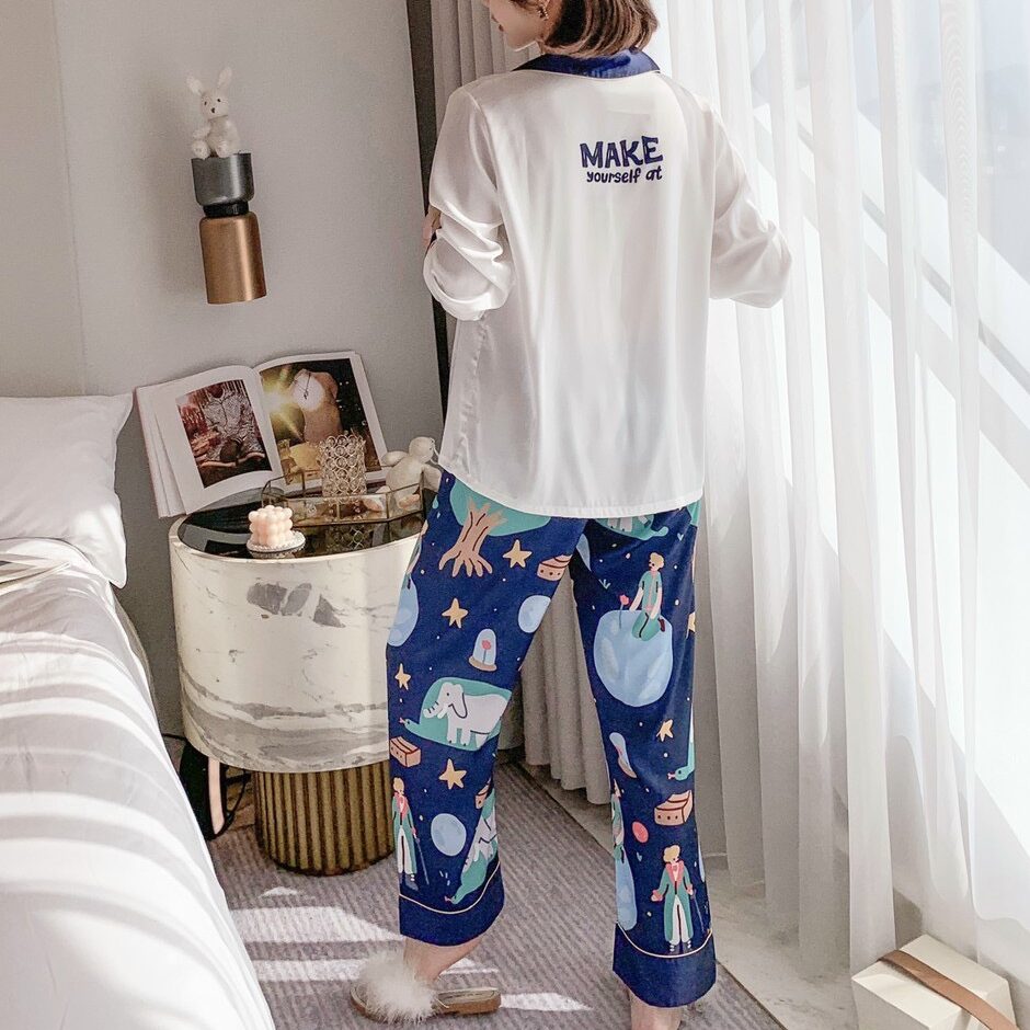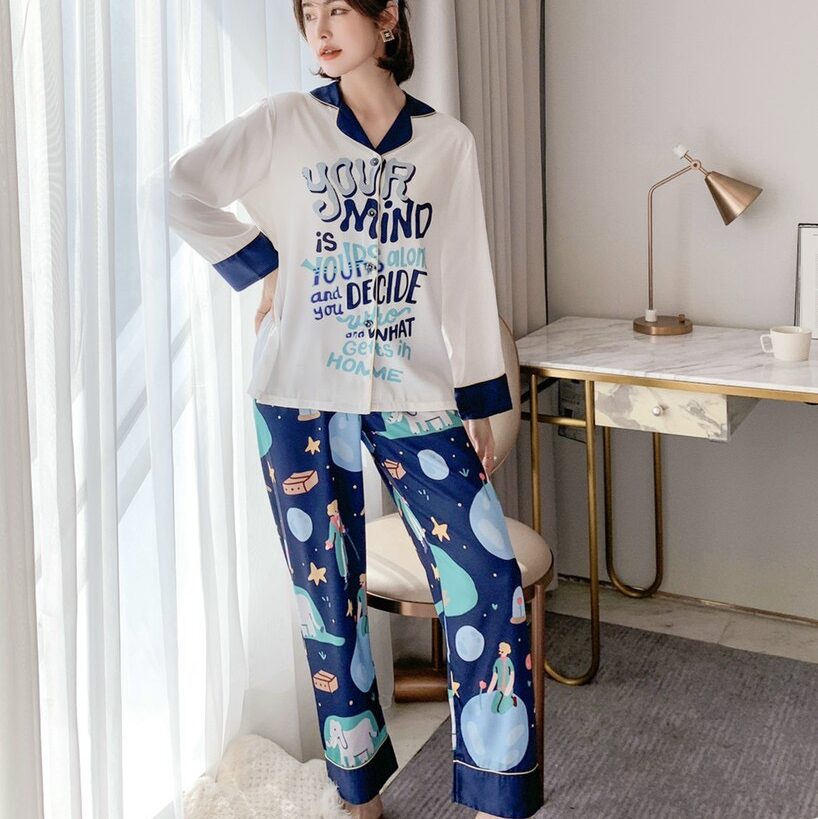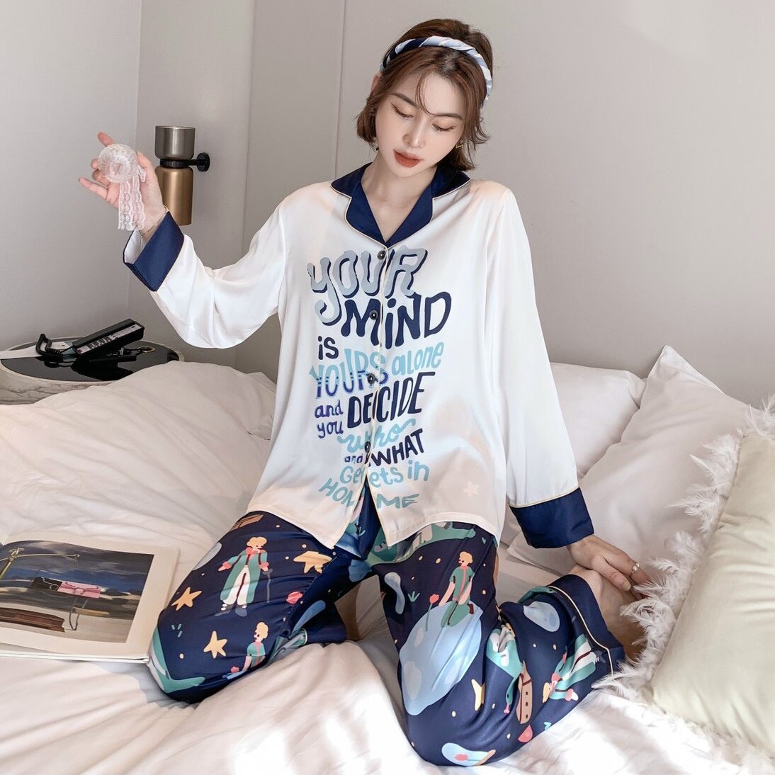 Chất liệu lụa mềm họa tiết in cute kiểu dáng pijama dài tay dài giúp nàng mặc thoải mái phù hợp thời tiết chuyển mùa cuối năm.