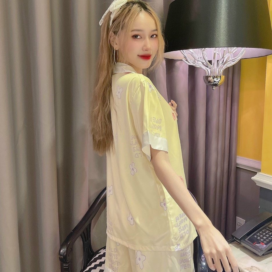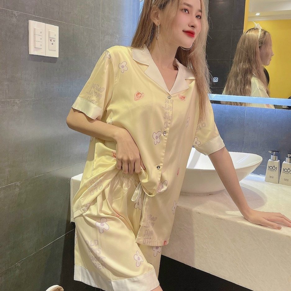 Đồ ngủ bộ pijama tay ngắn kiểu dáng hoạ tiết đáng yêu tăng thêm vẻ đáng yêu cho người mặc.