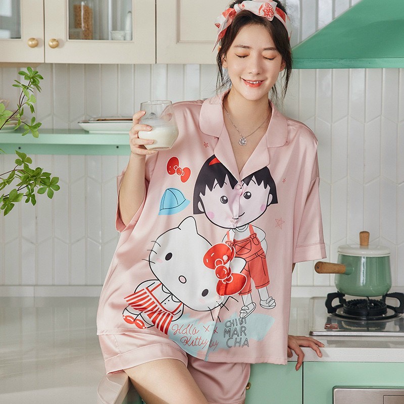 Chất liệu lụa cao cấp mềm mịn hoạt tiết cute kiểu dáng pijama ngắn tay ngắn mang đến cho bạn cảm giác thoải mái tự tin khi mặc.