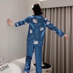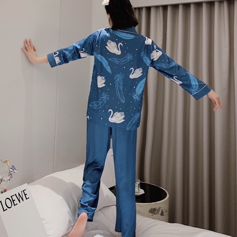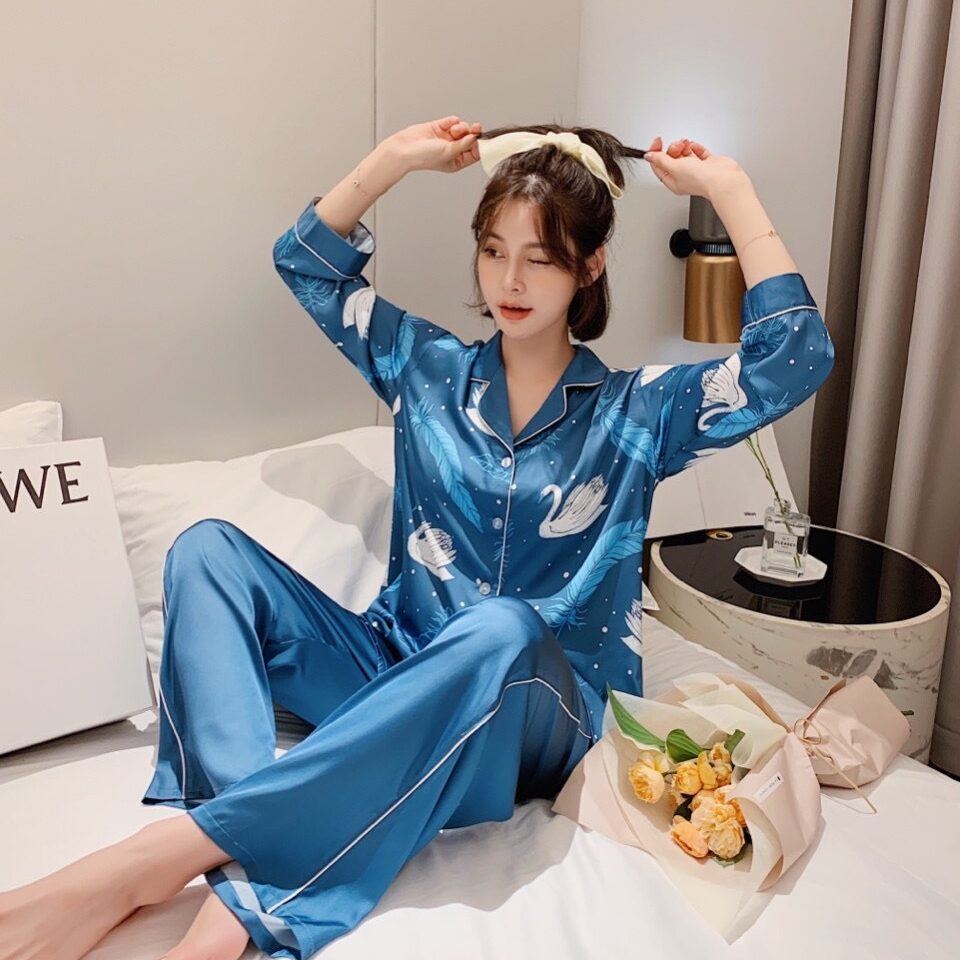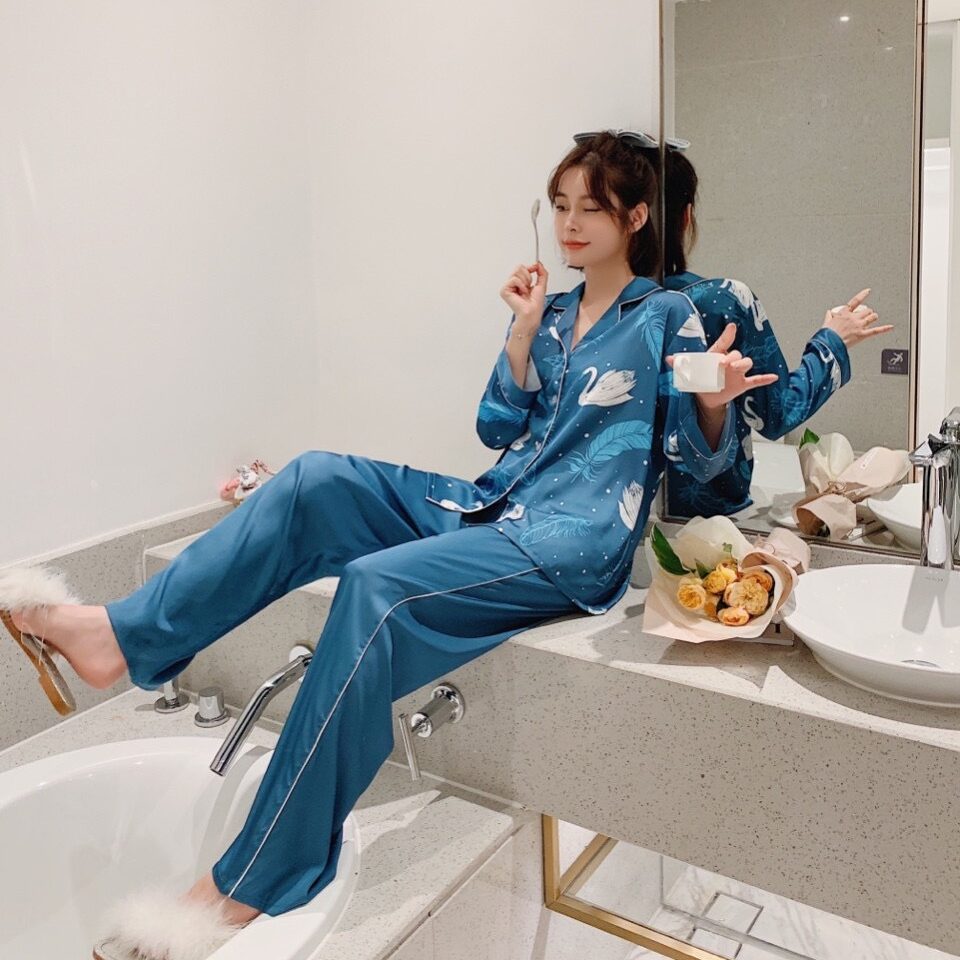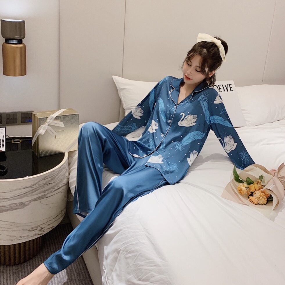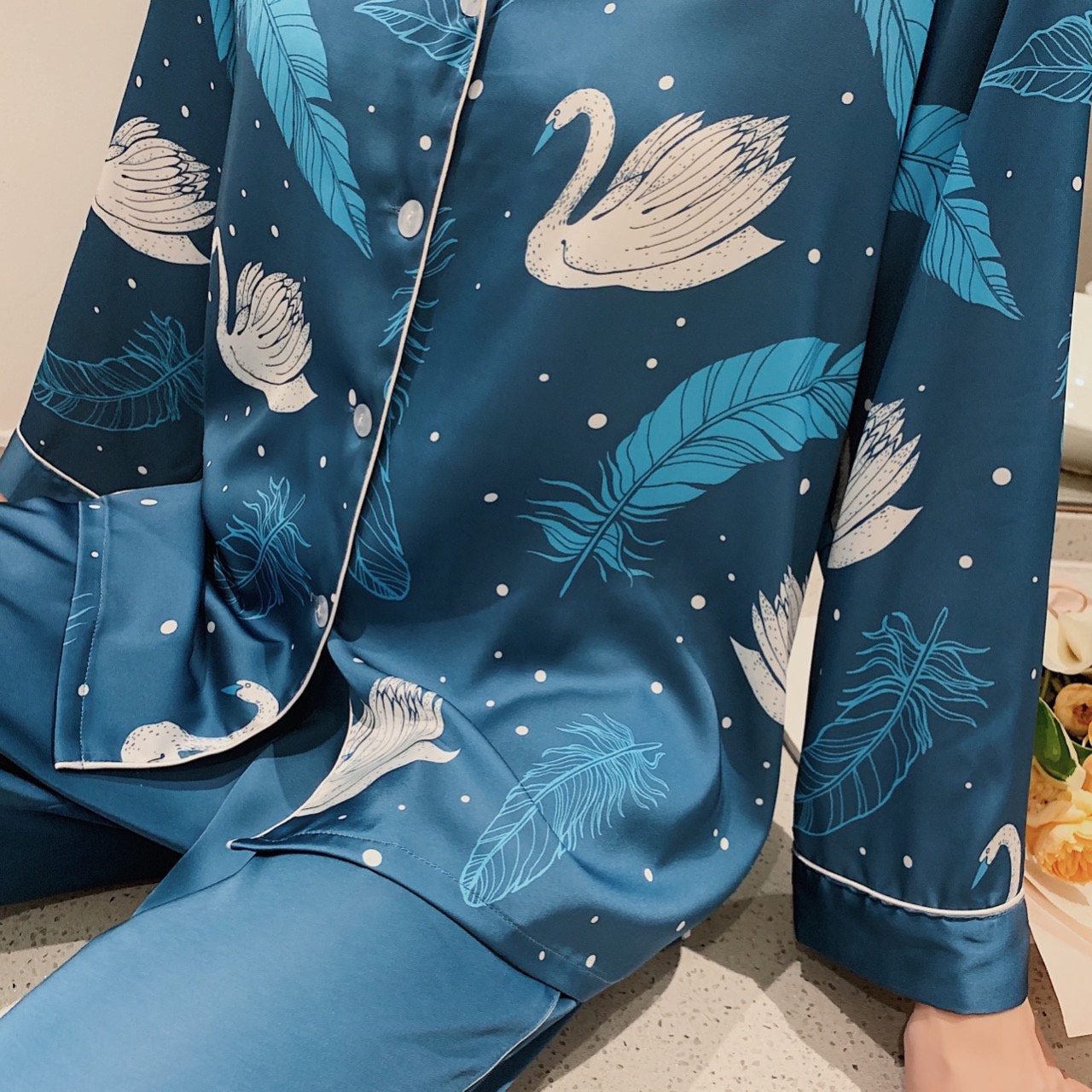 Chất liệu lụa cao cấp mềm mịn họa tiết thiên nga trắng được phối trên tông nền xanh cực sang trọng.