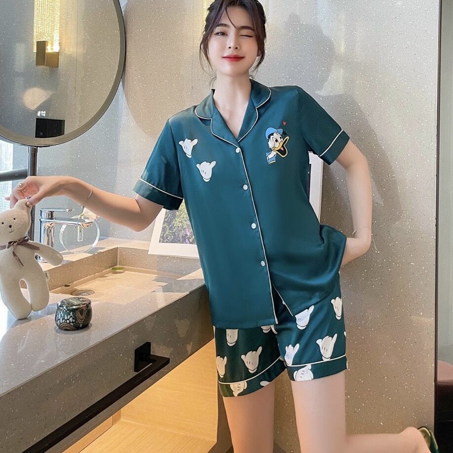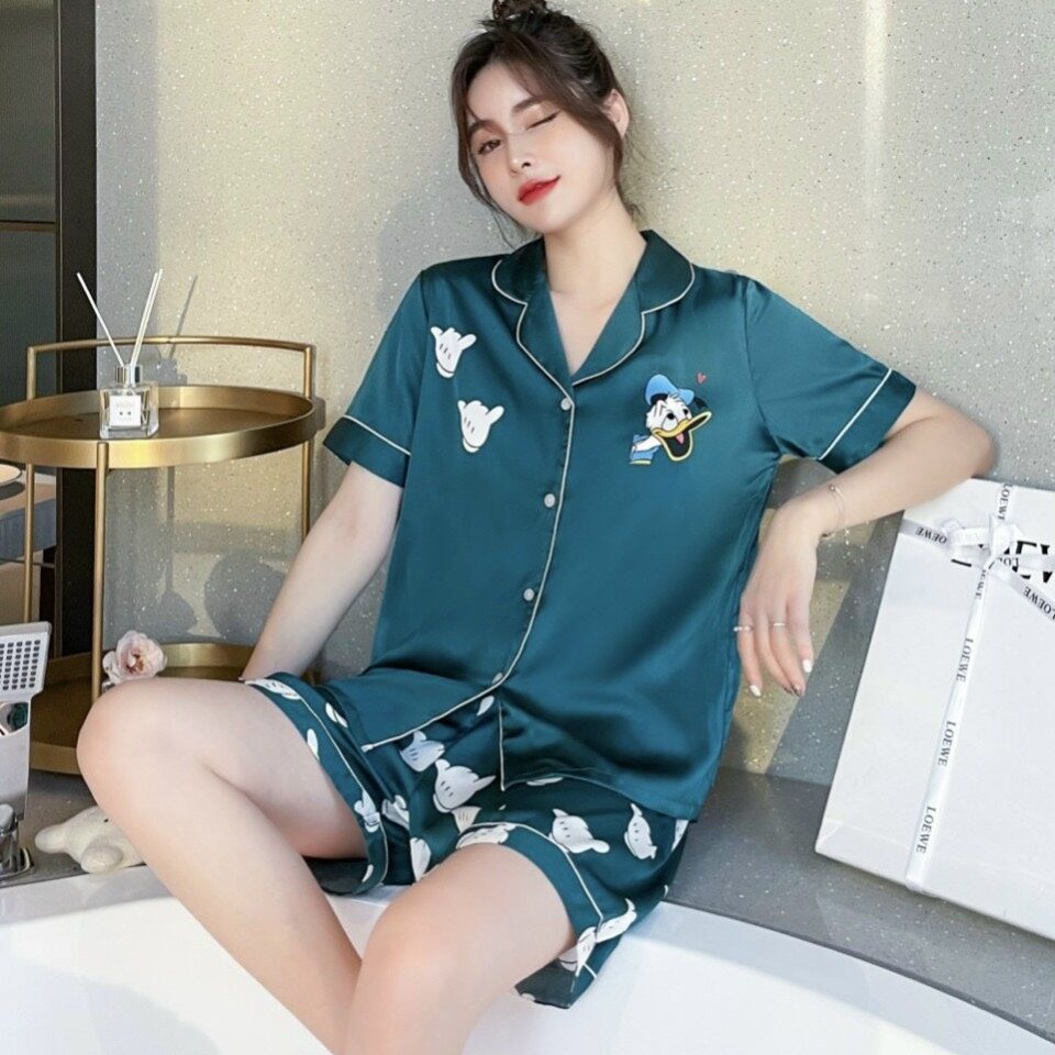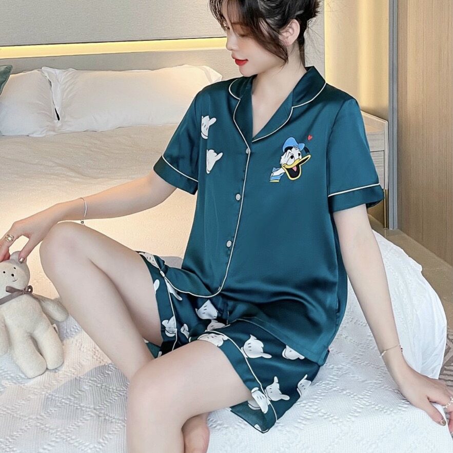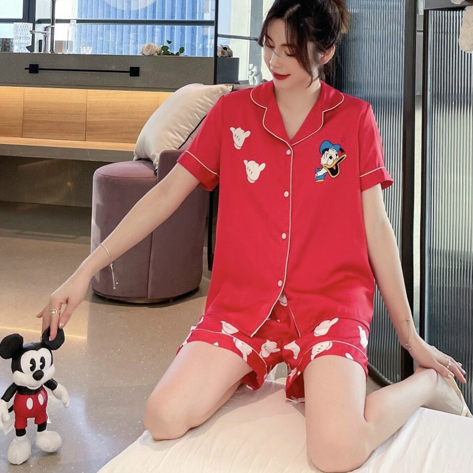 Đồ ngủ pijama ngắn tay ngắn chất liệu lụa cao cấp họa tiết cực cute chú vịt donal đáng yêu mang lại cho bạn sự thoải mái và tự tin khi ở nhà. Màu: đỏ, xanh.