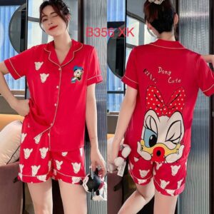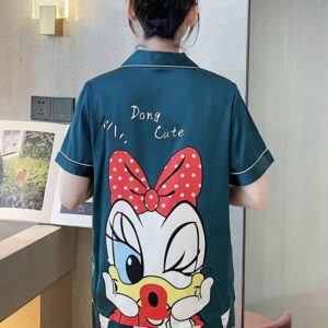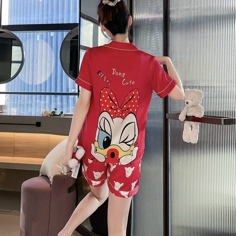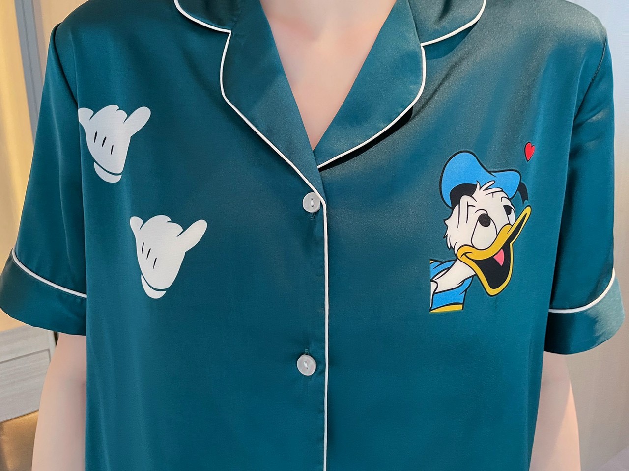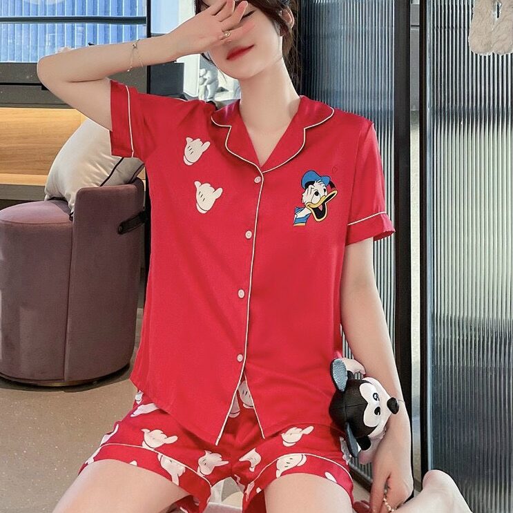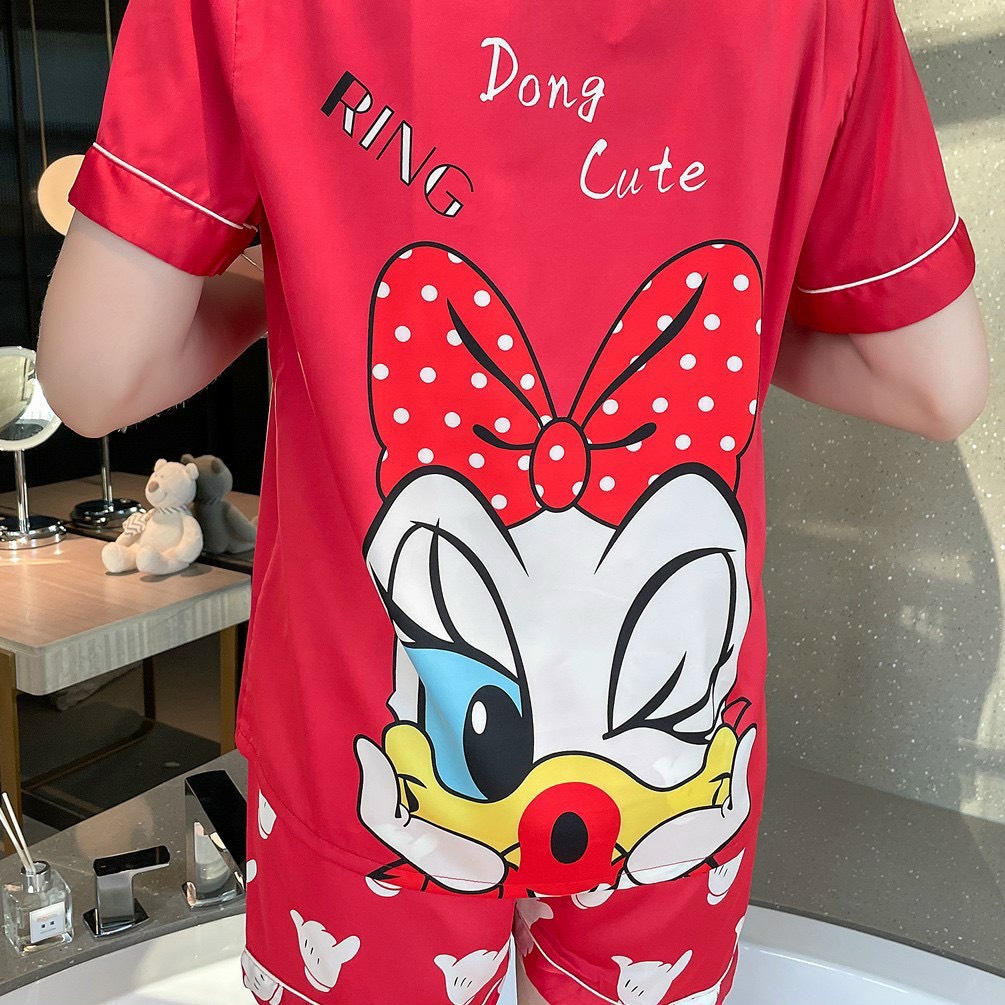 Đồ ngủ pijama ngắn tay ngắn chất liệu lụa cao cấp họa tiết cực cute chú vịt donal đáng yêu mang lại cho bạn sự thoải mái và tự tin khi ở nhà. Màu: đỏ, xanh.