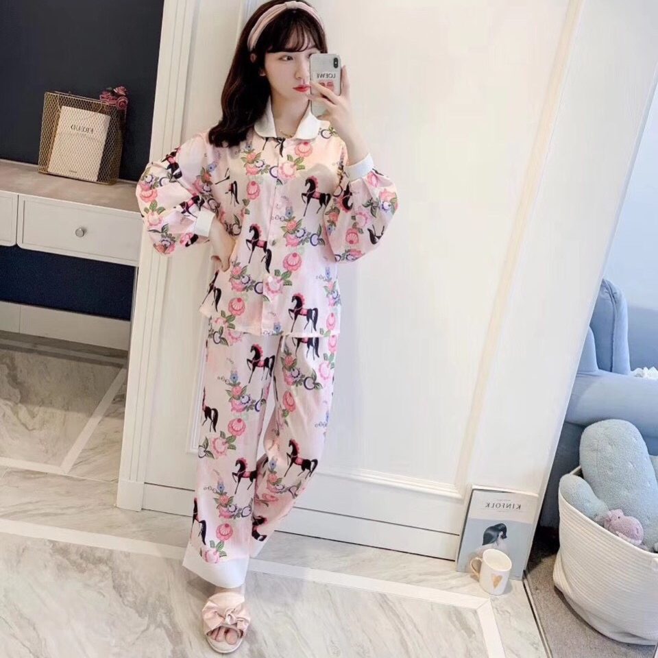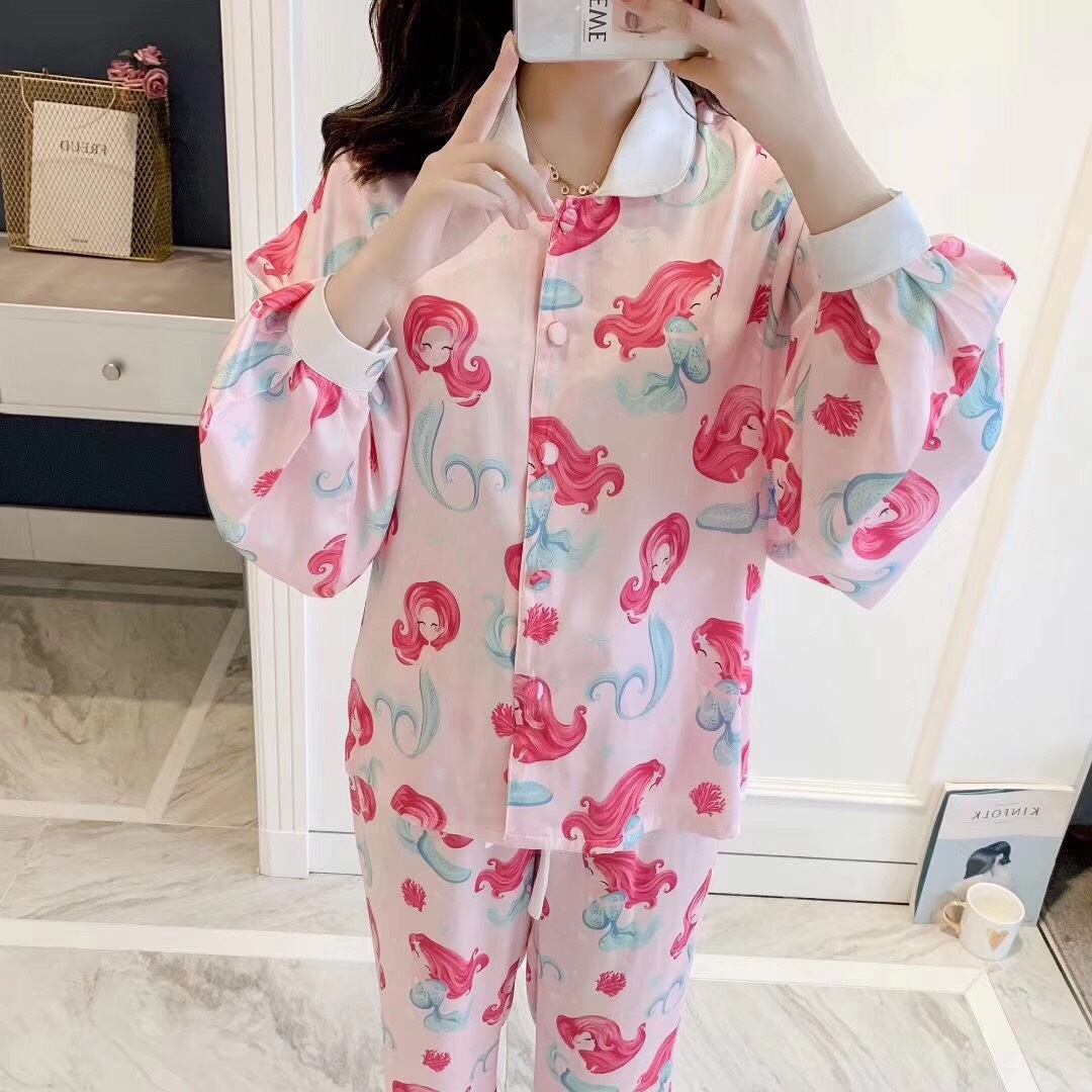 Pijama chất liệu phi lụa cao cấp mềm mịn họa tiết dễ thương kiểu dáng thiết kế trẻ trung sang trọng. Màu: hồng, xanh, đỏ.