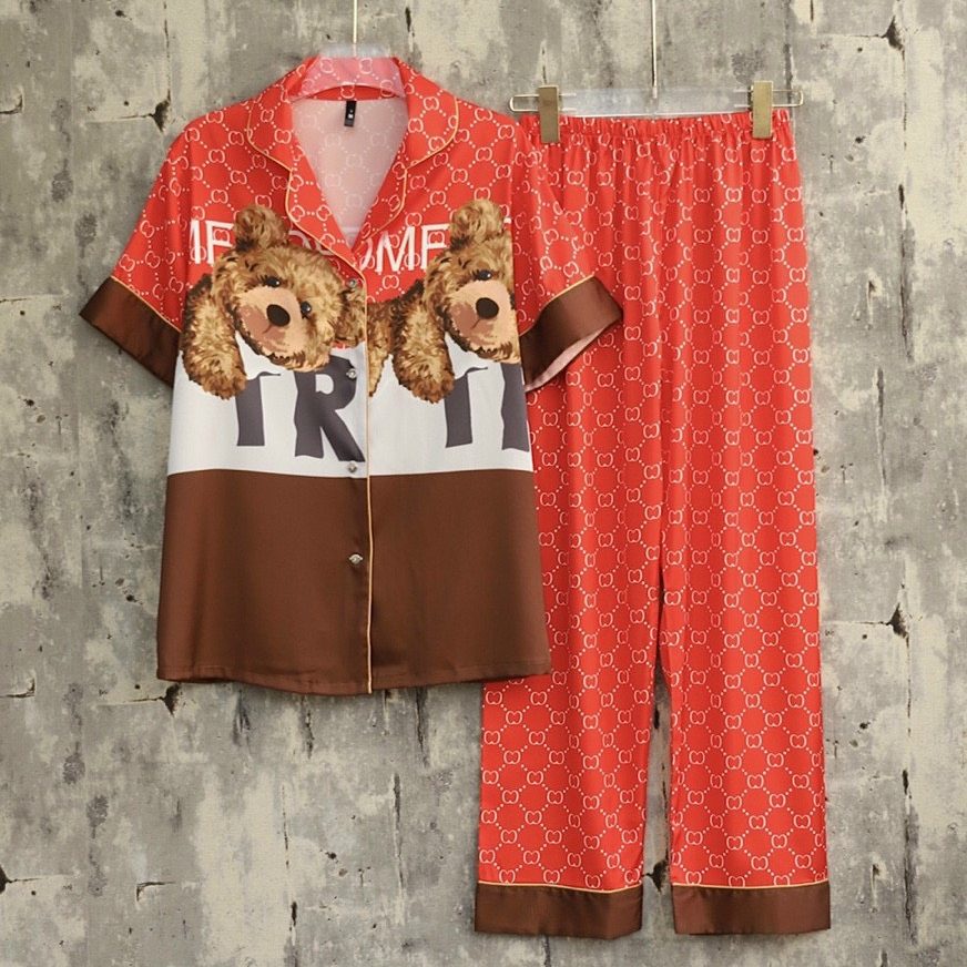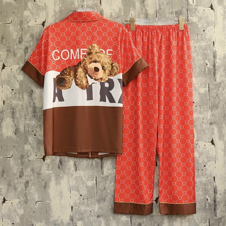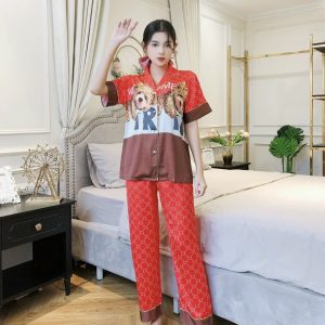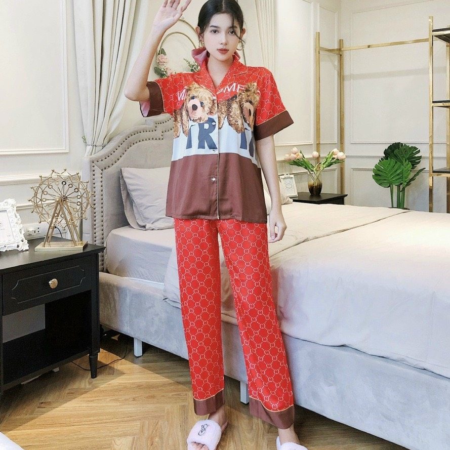 Chất liệu lụa cao cấp hoạ tiết in sắc sảo kiểu dáng pijama dài tay ngắn hoạ tiết gấu Teddy cute đáng yêu.