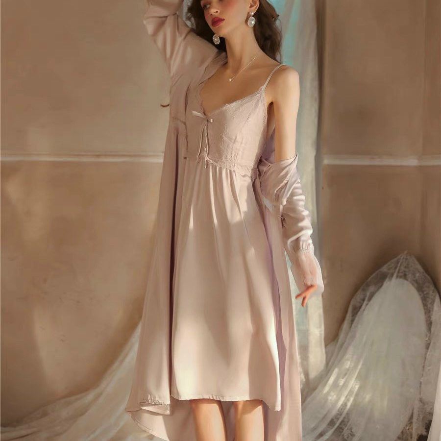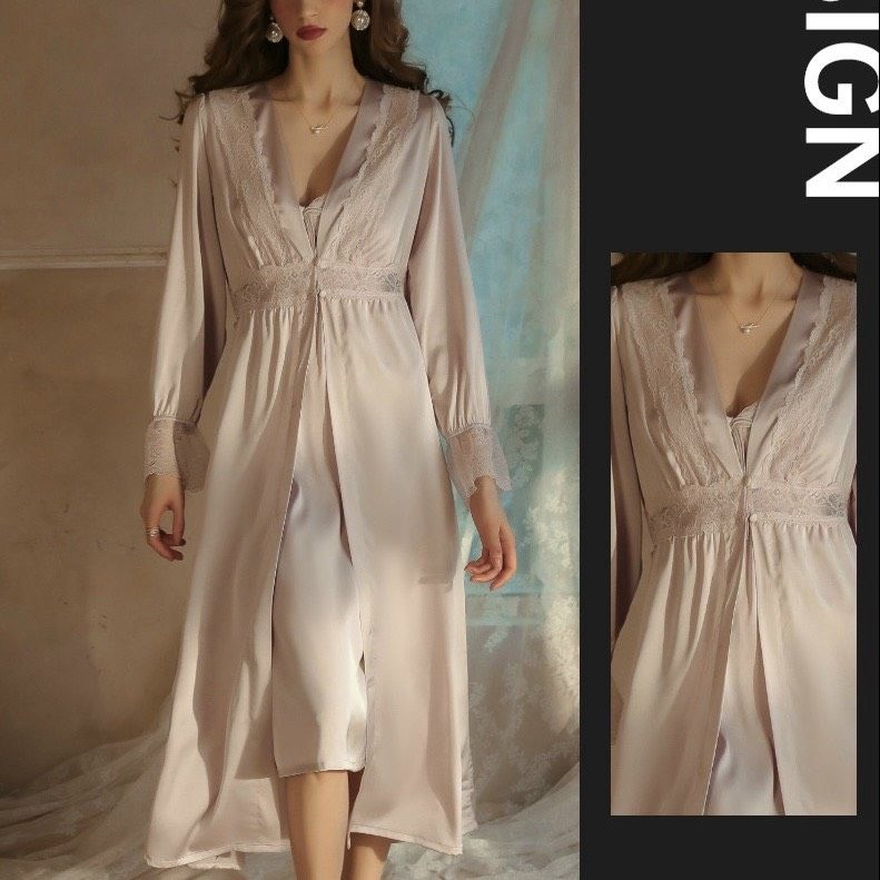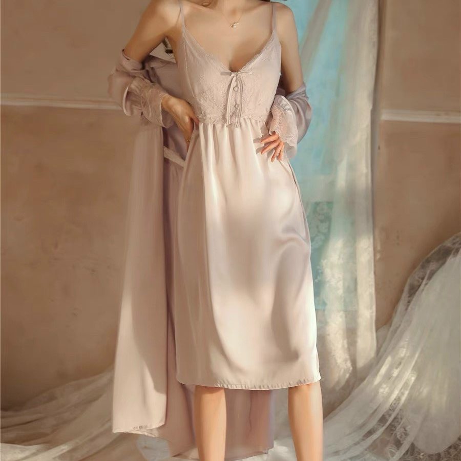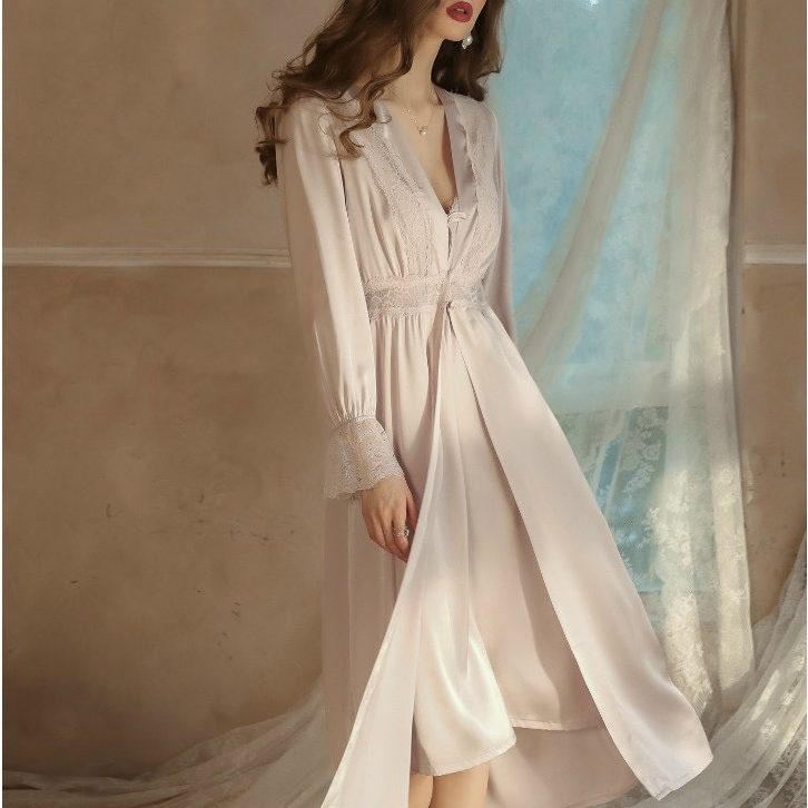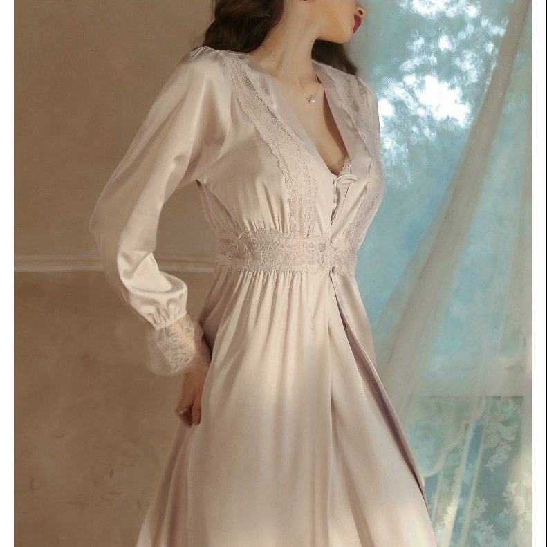 Chất lụa cao cấp mềm mịn phối ren mềm mịn sắc sảo kiểu dáng váy ngủ dài đem đến cho bạn sự sang trọng quý phái.