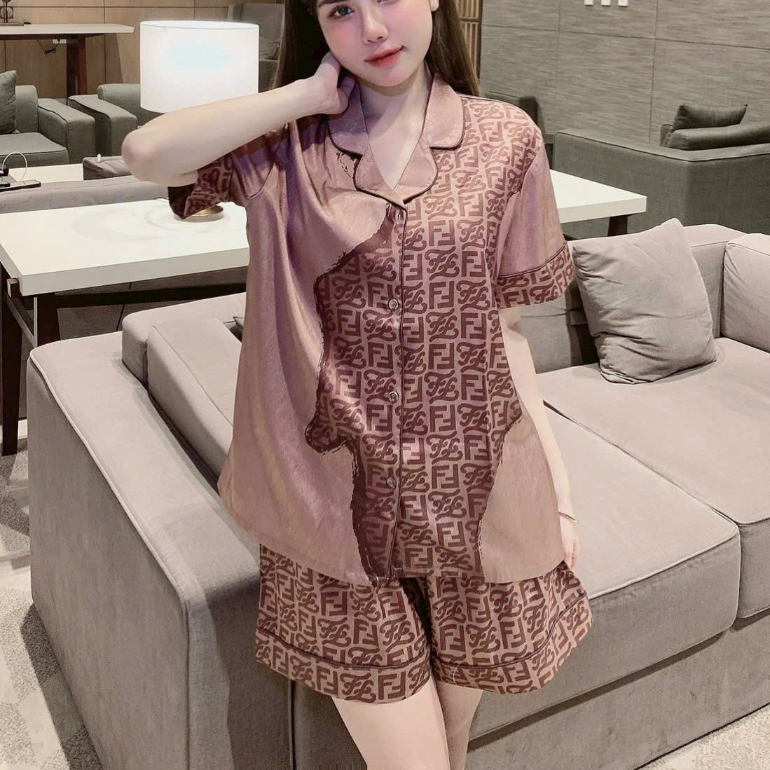 Set đồ ngủ lụa họa tiết mang phong cách hiện đại – thanh lịch – sang trọng, nổi bật với họa tiết thời trang tạo điểm nhấn tinh tế. Thiết kế đơn giản nhưng cực kỳ “có gu”, phù hợp cho nàng yêu thích sự chỉn chu ngay cả khi ở nhà.