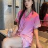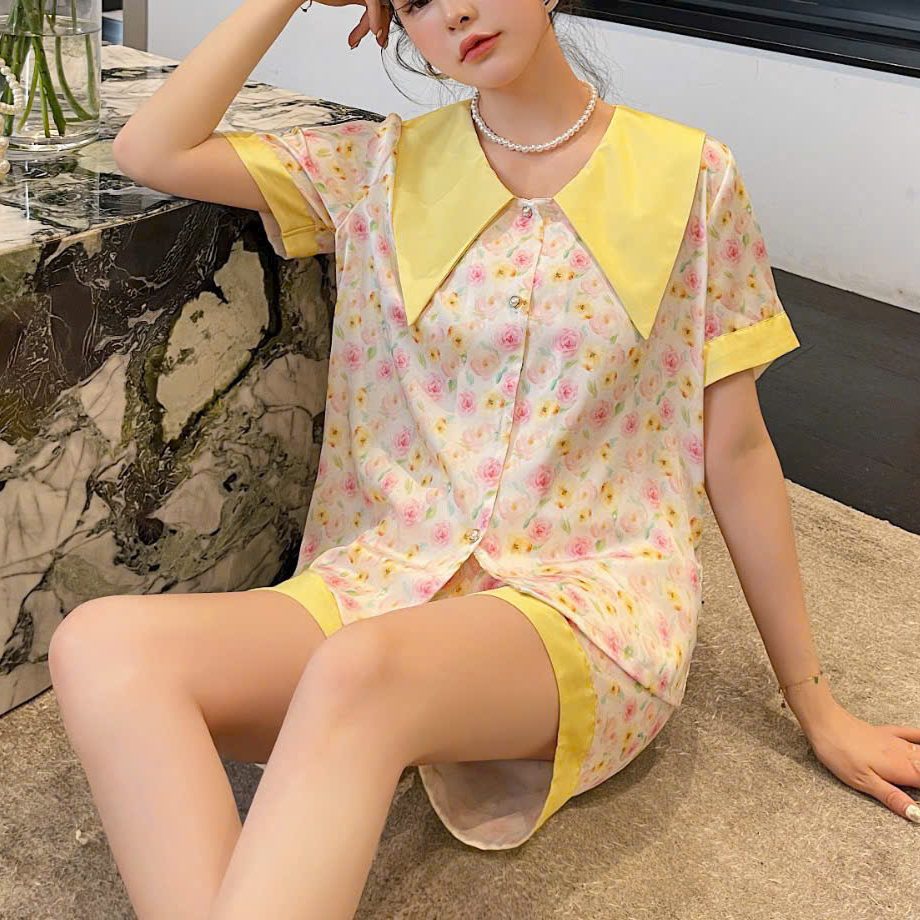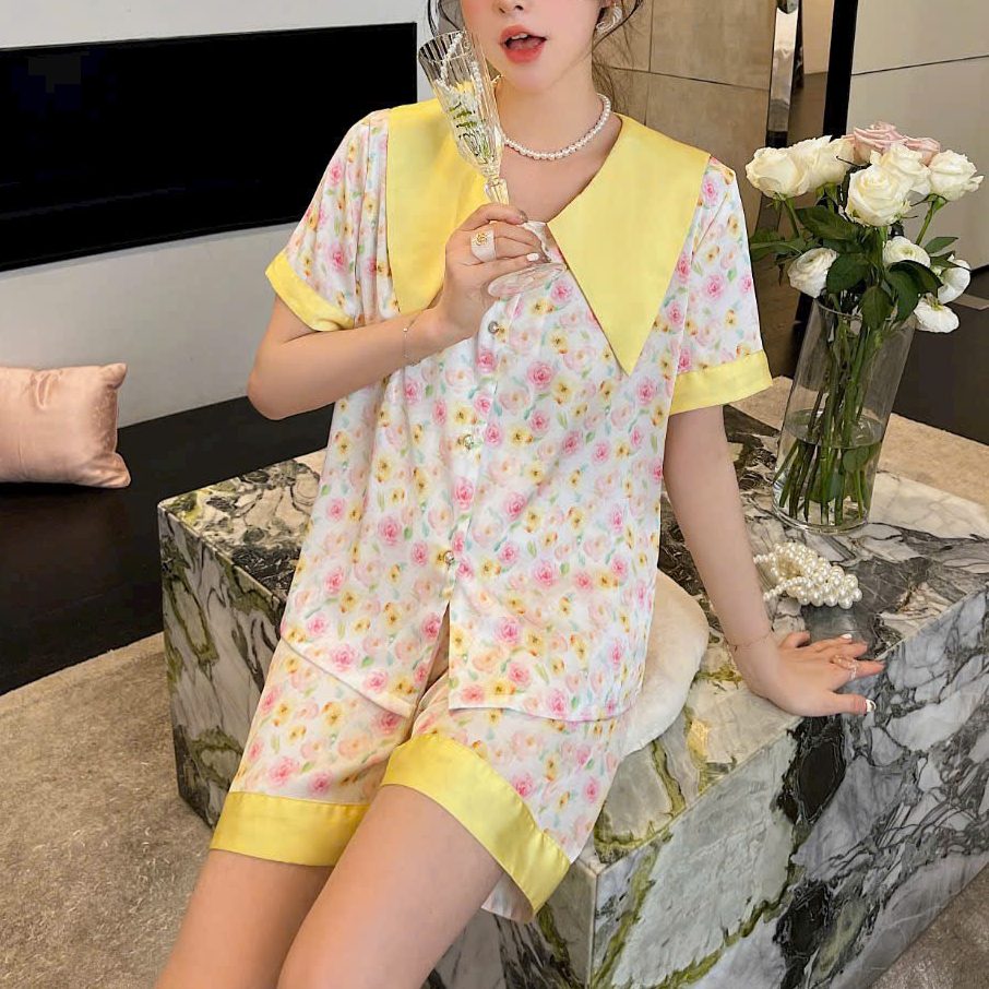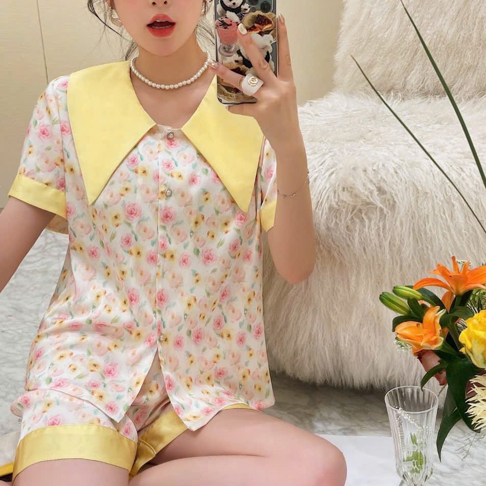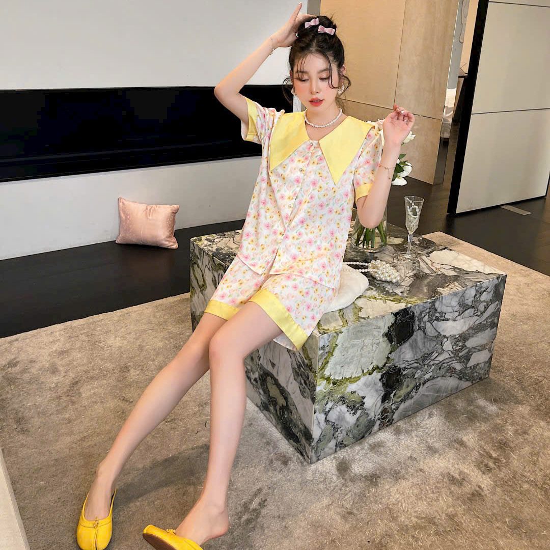 Set đồ ngủ lụa ngắn mang phong cách ngọt ngào – trẻ trung – thanh lịch, với họa tiết hoa nhí nhẹ nhàng kết hợp cổ bản to nổi bật. Thiết kế thoải mái, phù hợp mặc ở nhà hoặc ngủ đều xinh xắn.
