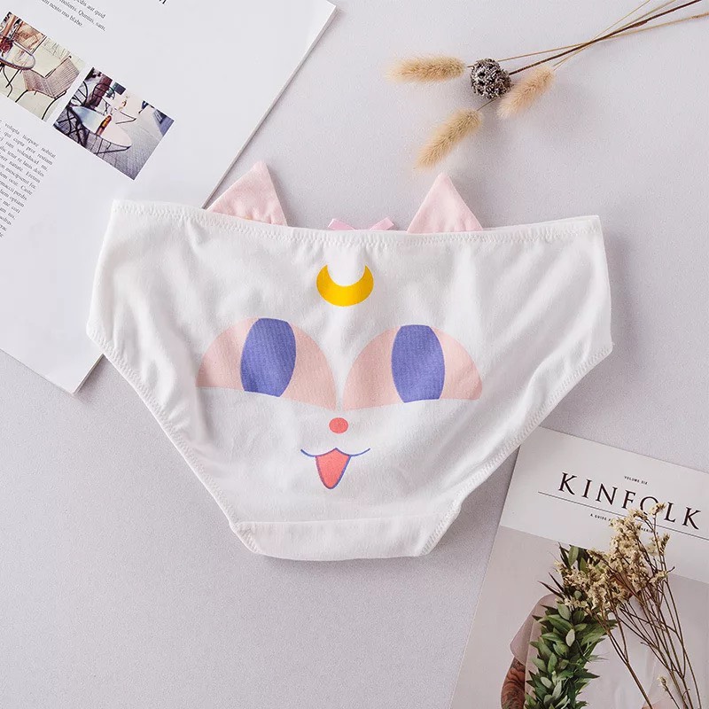 Quần lót cotton chất liệu mềm mịn không gây ngứa cảm giác thoải mái khi mặc. Họa tiết hình chú mèo con đáng yêu.
