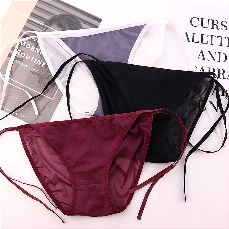 Hình ảnh chi tiết Quần lót cotton phối ren lưới cột dây hai bên hông sexy 5 màu