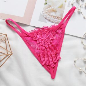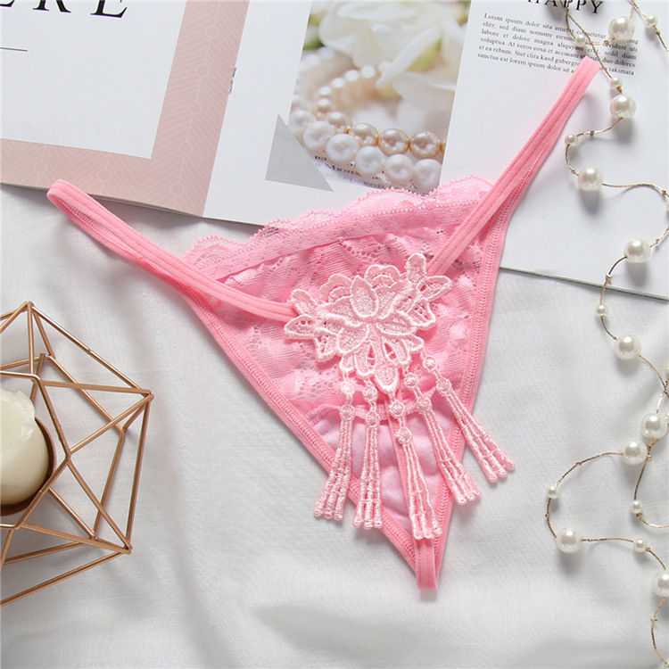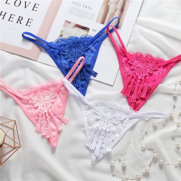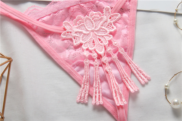 Quần lót lọt khe ren dây tua rua, chất liệu mềm mại thoáng mát tạo cảm giác dễ chịu và tôn vẻ đẹp sexy, gợi cảm khi mặc. Năm màu: hồng, trắng, đen, đỏ, xanh.