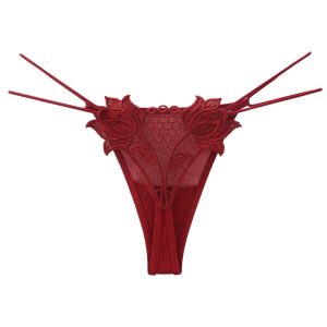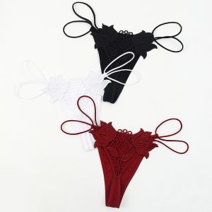 Quần lót lọt khe ren phối dây hai bên hông cực gợi cảm cho nàng. Màu sắc: đen, đỏ, trắng.