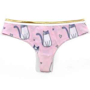 Quần lót lọt khe thun co giãn ôm mông họa tiết mèo đáng yêu QL8802
