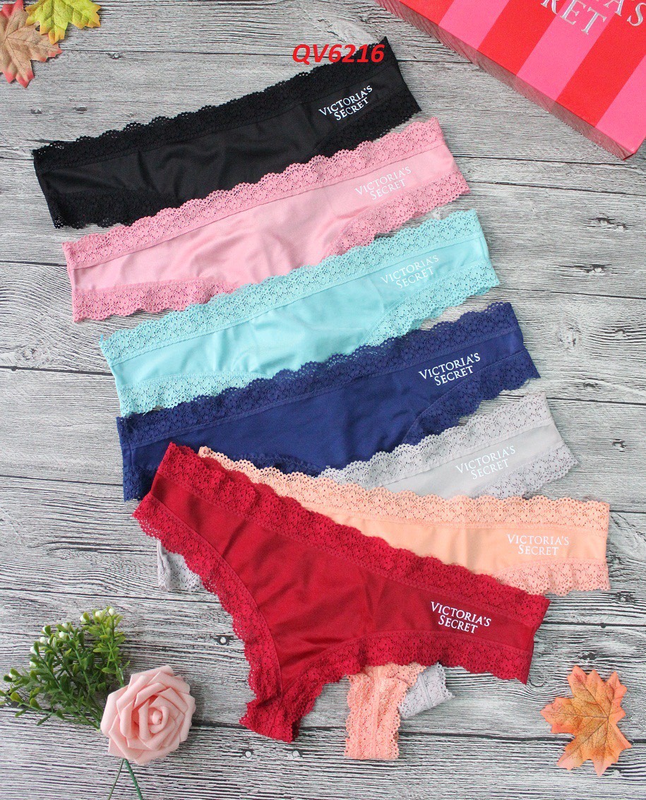Quần lót chất liệu thun cotton phối ren mềm mại kiểu dáng quần lọt khe mang lại cho chị em sự quyến rũ khó cưỡng. Màu: đen, đỏ, hồng, xám, xanh.