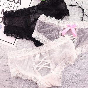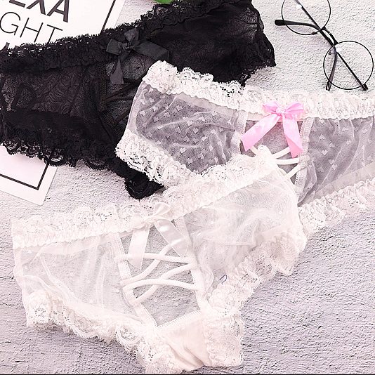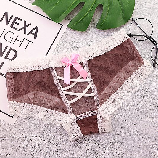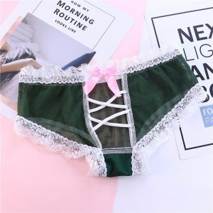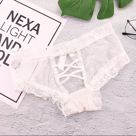 Quần lót nữ chất liệu ren viền trắng thiết kế dây chéo hở mông sexy, mang đến cho bạn nữ phong cách gợi cảm nóng bỏng. Năm màu: da, đen, hồng, trắng, xanh.