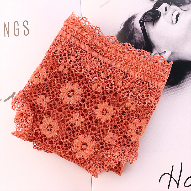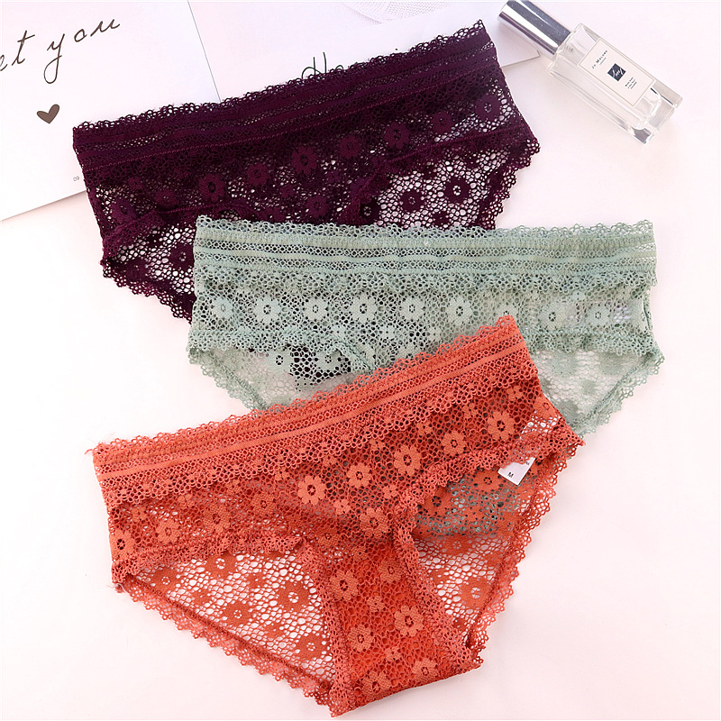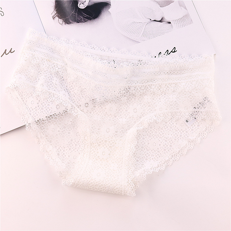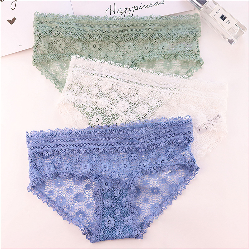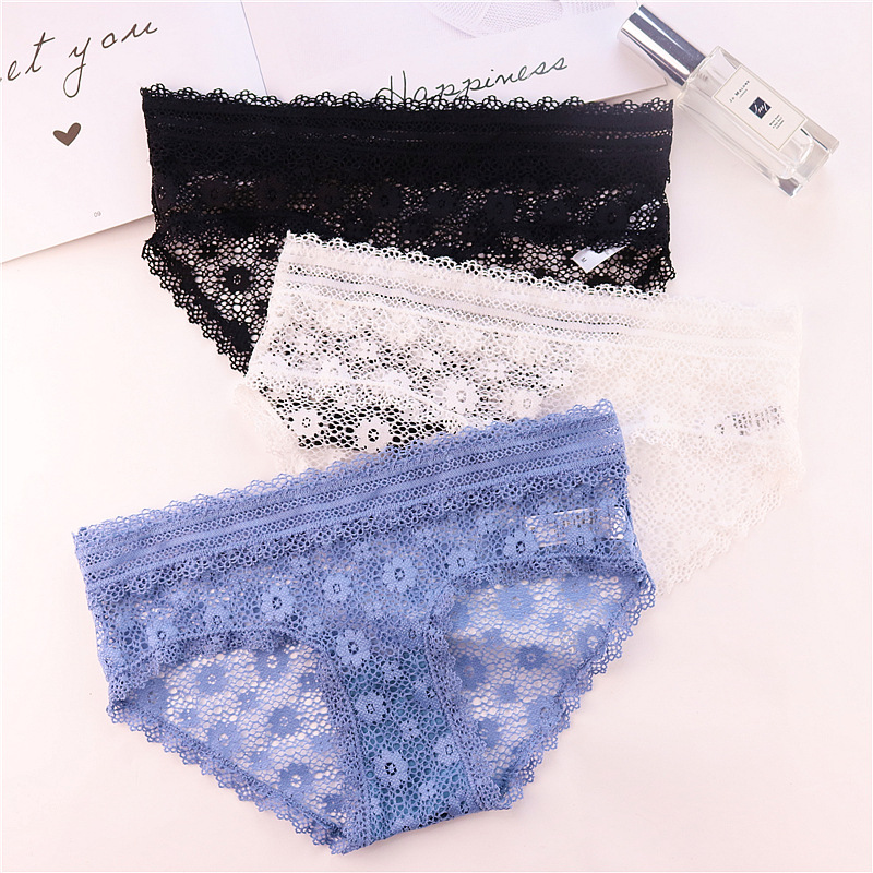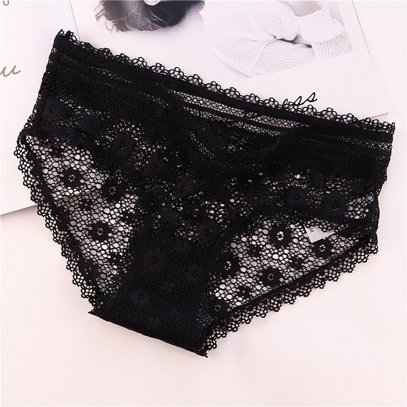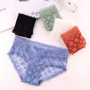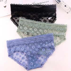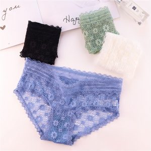 Quần lót nữ ren họa tiết bông hoa dễ thương, Chất liệu mềm mại thoáng mát tạo cảm giác dễ chịu và tôn vẻ đẹp sexy, gợi cảm khi mặc. Sáu màu: đen, trắng, da, xanh, xám, tím.