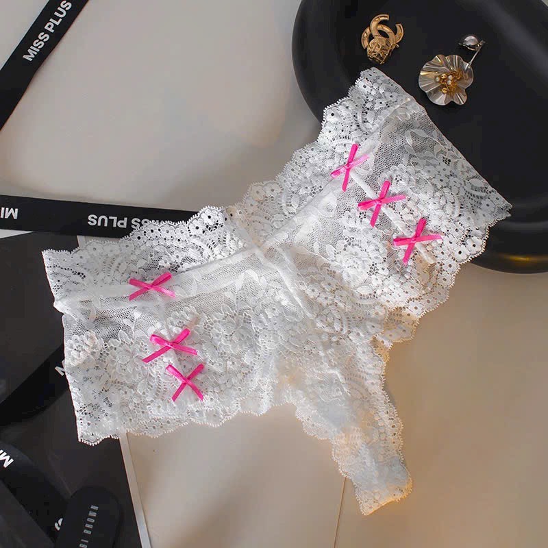 Quần lót ren cạp cao đính nơ đem lại cho bạn sự thoải mái vẻ gợi cảm. Màu sắc: trắng, hồng.