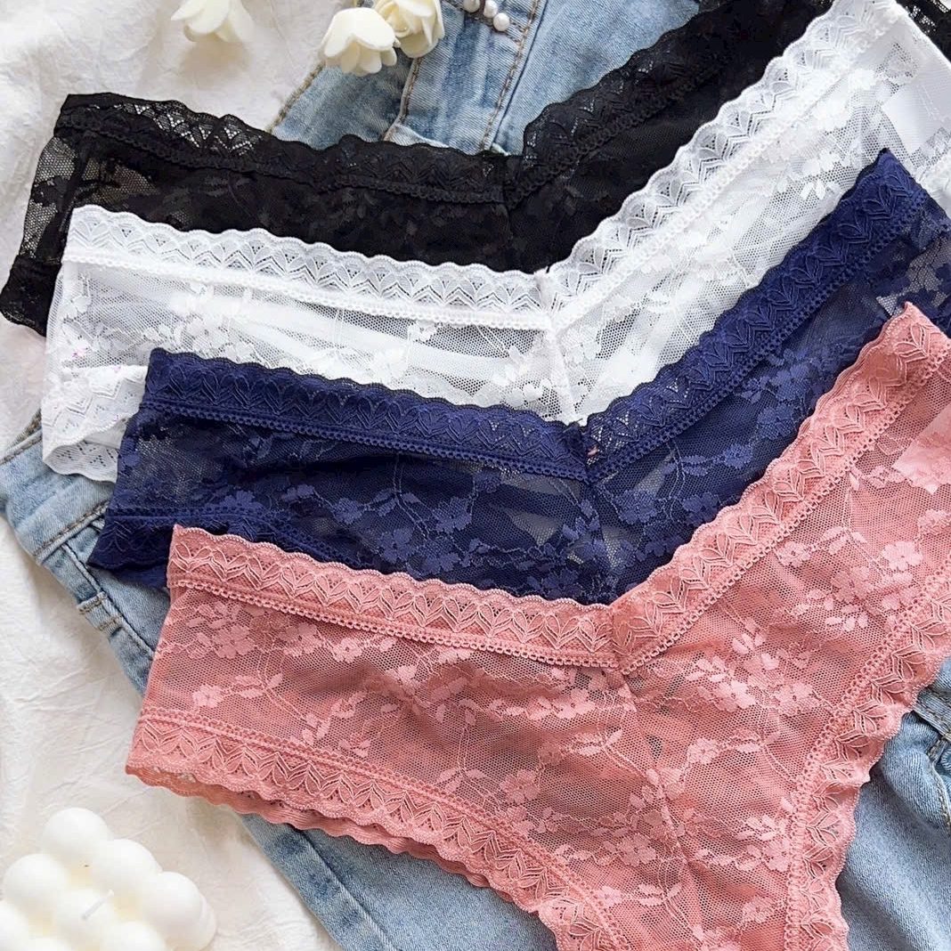 Quần lót ren mềm mịn kiểu dáng lưng thấp quần phôm đem đến cho bạn gái vẻ đáng yêu gợi cảm. Màu sắc: trắng, đen, hồng, xanh.