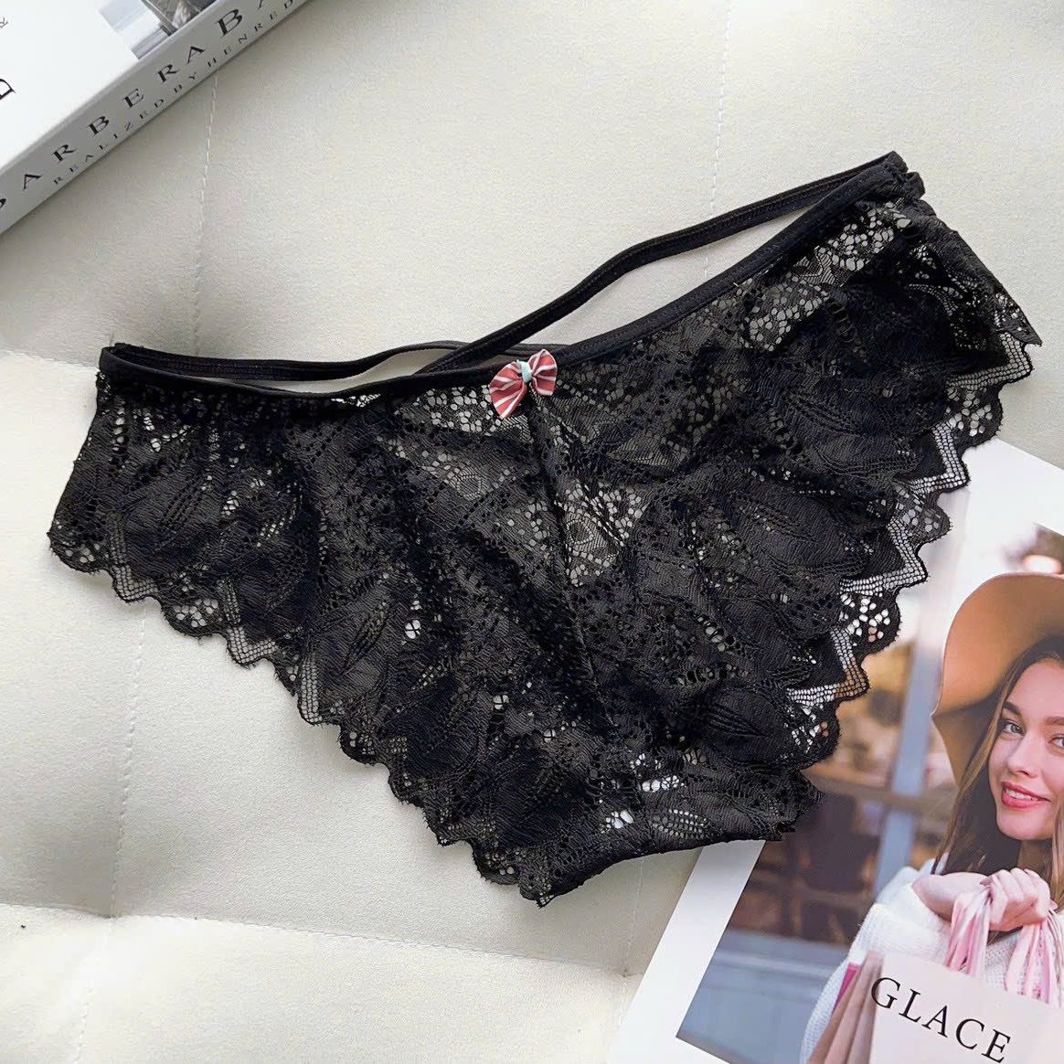 Quần lót ren mềm mịn phối dây quyến rũ cho nàng sự gợi cảm quyến rũ. Màu sắc: đen, đỏ, da, trắng.