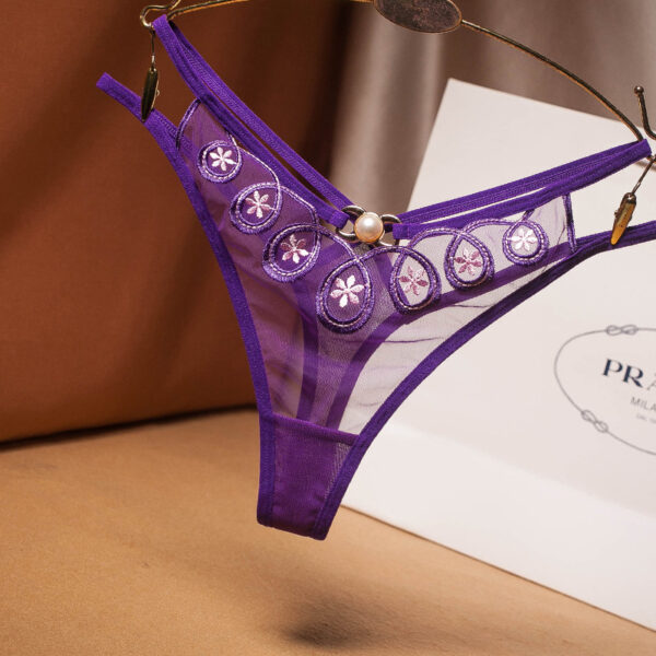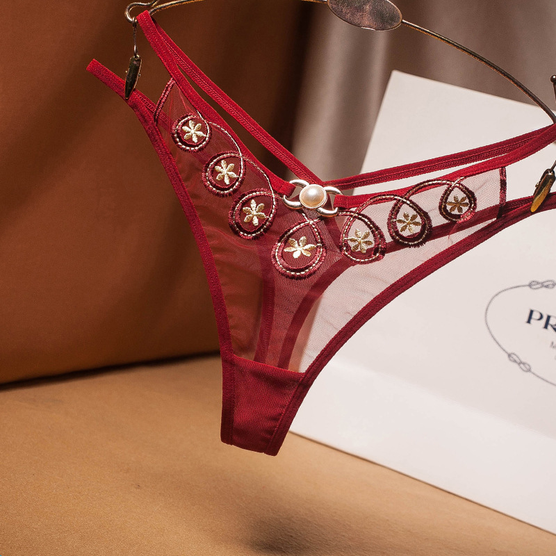 Quần lót ren thêu hoa nổi bật trong suốt đính hạt cực quyến rũ cho nàng thêm phần gợi cảm. Màu: đen, đỏ, tím, xanh.