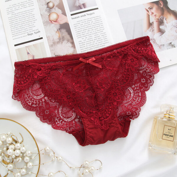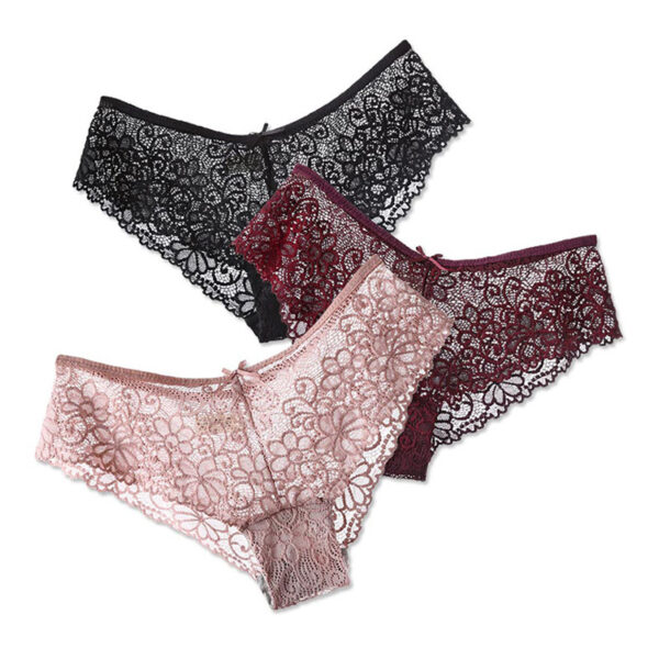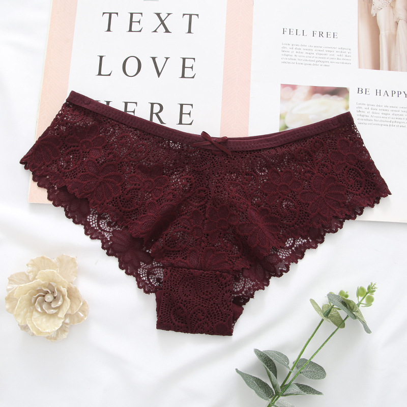 Quần lót ren trong suốt kiểu dáng eo thấp gợi cảm quyến rũ. Màu: da, đen, đỏ, tím.